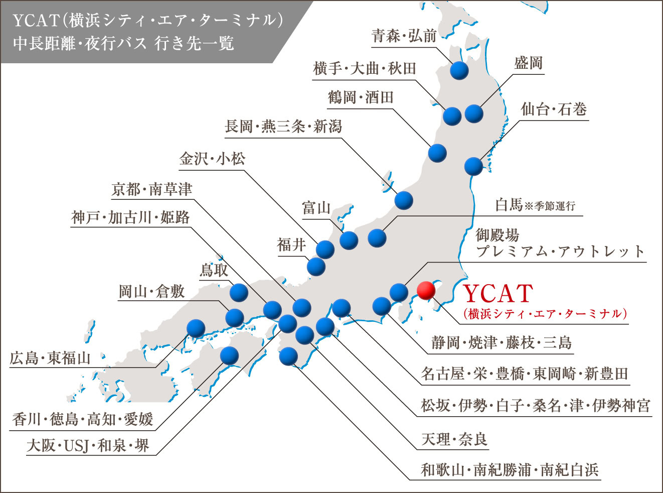 横浜駅東口バスターミナル&YCATから、高速バスで全国各地へ。