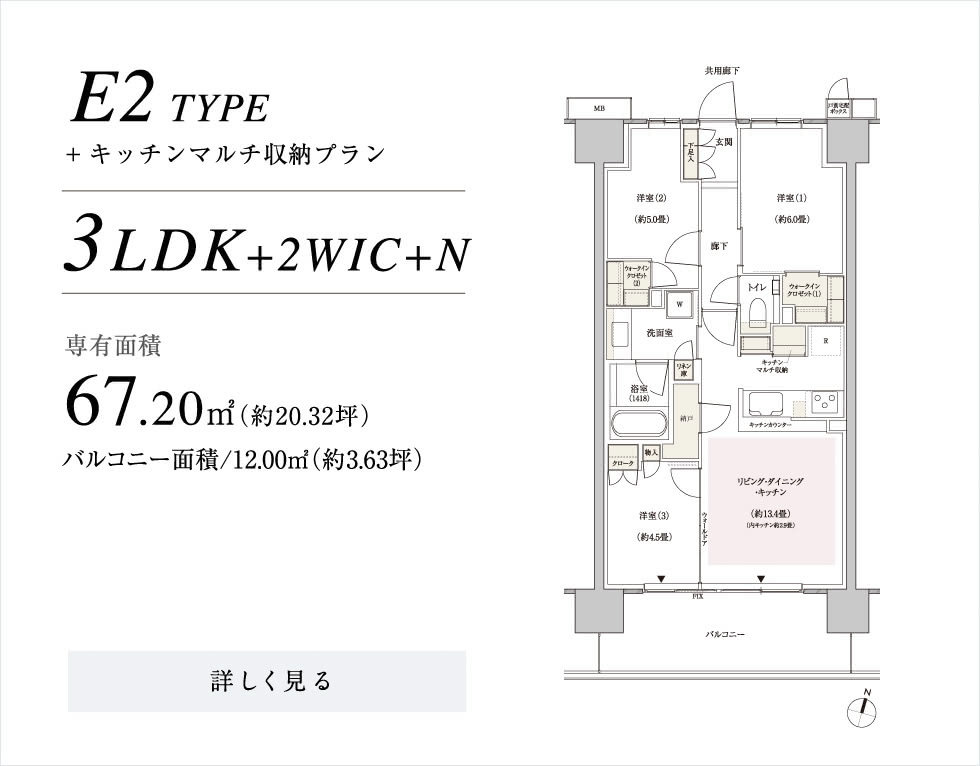 ※リビング・ダイニング・キッチン部分の畳数には、冷蔵庫置場・食器棚置場・キッチンマルチ収納・ユーティリティスペースが含まれています。