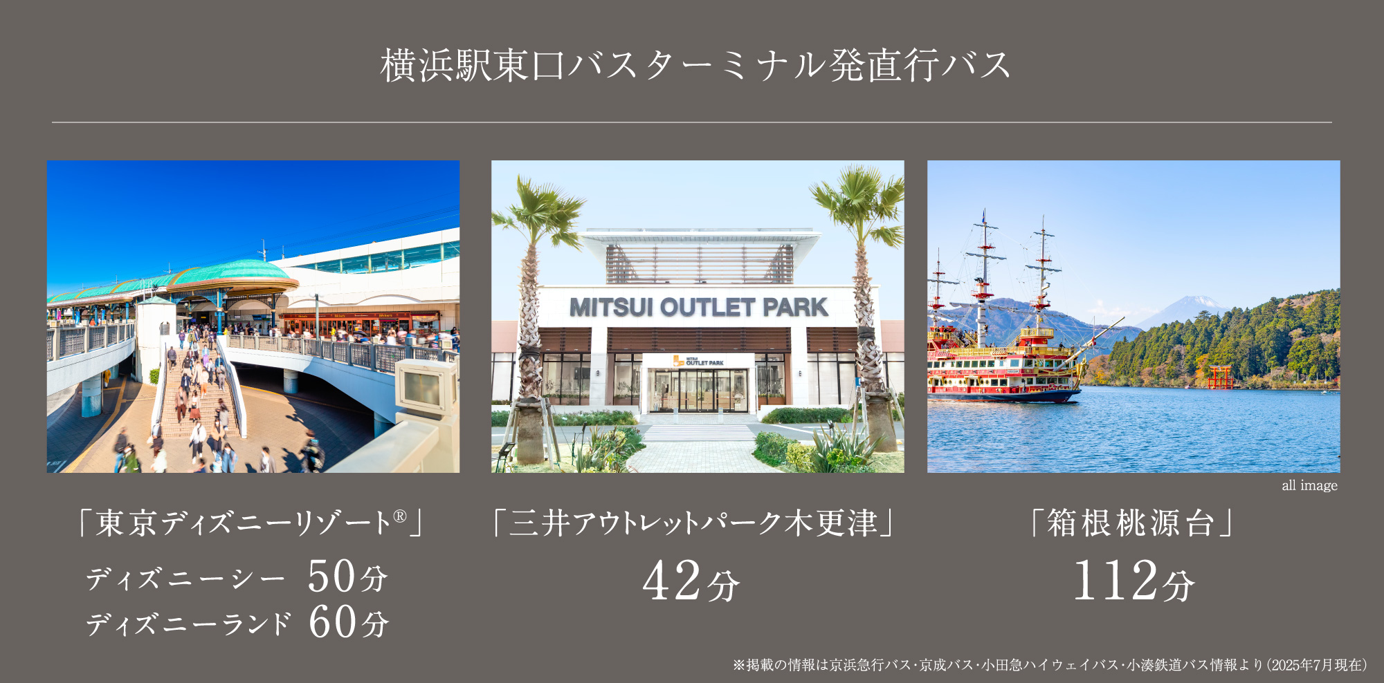 ※記載の電車所要時間は通勤時(7:30~9:00)、()内は平日・日中時(11:00~16:00)の目的駅へ到着する最も本数の多い電車のものです。所要時間に乗り換え待ち時間を含んでいます。また、時間帯により多少異なります。