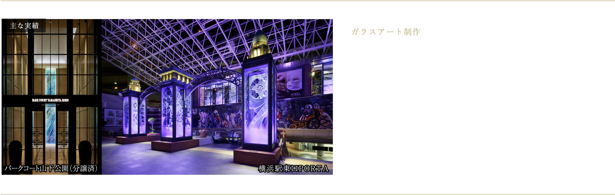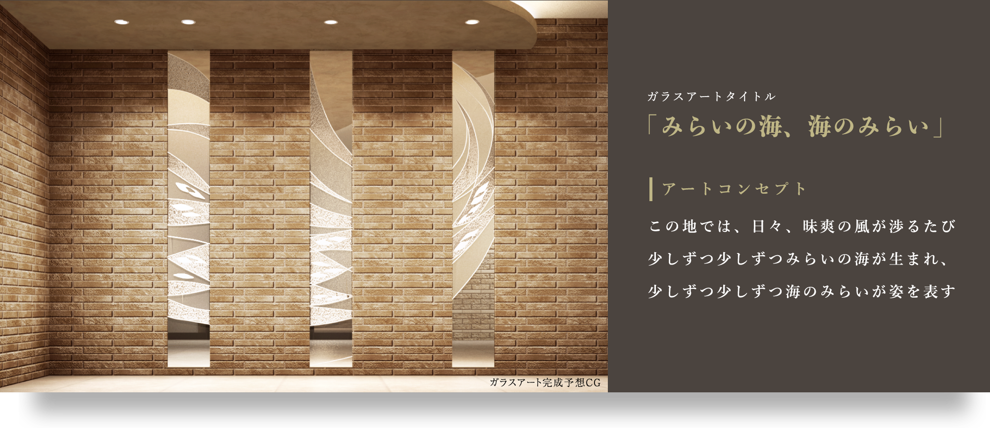 横浜出身アーティストによるガラスアートが、水の潤いを映し出します。