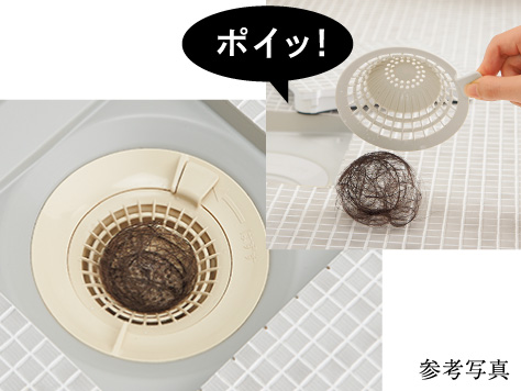 滑らかなすり鉢形状がごみや髪の毛を中央に誘導。髪の毛を簡単に捨てられ、汚れが落としやすく、お手入れも簡単です。