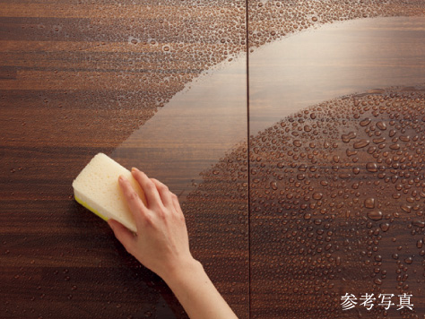 高い硬度と強度を併せ持つ人工大理石天板と、継ぎ目のないボウル一体型のカウンター。日々のお手入れもしやすい形状です。