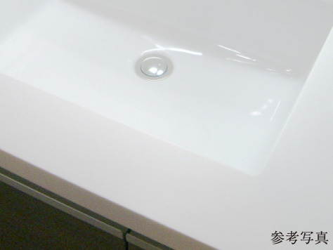 お手入れがしやすい人工大理石天板に、上質な印象の陶器のスクエアボウルを設置。機能性と美観に配慮しています。