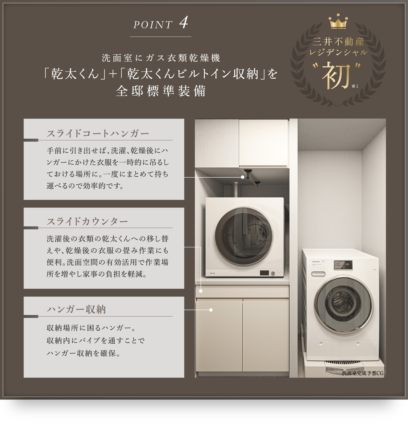※1.三井不動産レジデンシャルが供給する新築マンションにおいて「乾太くん」の全邸標準装備は初。(2025年10月現在)