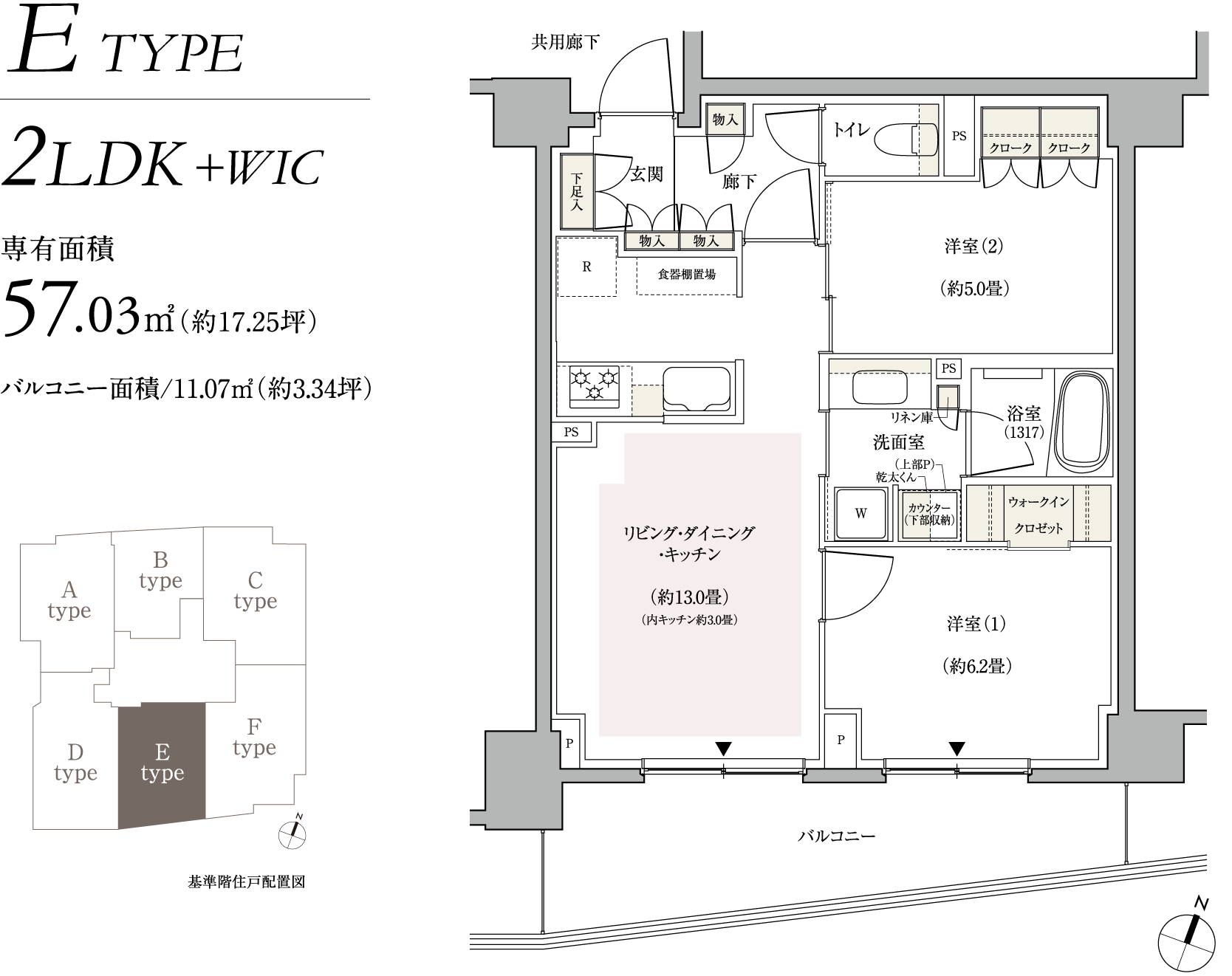 ※WIC=ウォークインクロゼット ※掲載の間取り図面は設計段階のもので、変更になる場合があります。 ※リビング・ダイニング・キッチン部分の畳数には、冷蔵庫置場・食器棚置場が含まれています。 ※住戸により、仕様・形状が異なる場合があります。 ※バルコニー手摺りの仕様および形状は階数によって異なります。 ※バルコニーの使用については管理規約等に従っていただきます。 ※代表タイプの間取りを表示しております。販売住戸の間取りについては本広告時の物件概要の「販売住戸の一覧」をご覧ください。