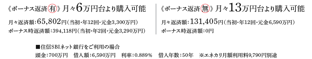 ※掲載の提携ローンの金利・借入条件は2025年9月16日現在のものであり、今後変更が生じる場合があります。提携ローンの金利の決定時期はローン実行時(物件のお引渡し時期)となります。なお、掲載の資金返済例は、ご年収・ご年齢等により実現出来ない場合がございます。掲載の返済例は概算です。実際の返済額と異なる場合があります。
