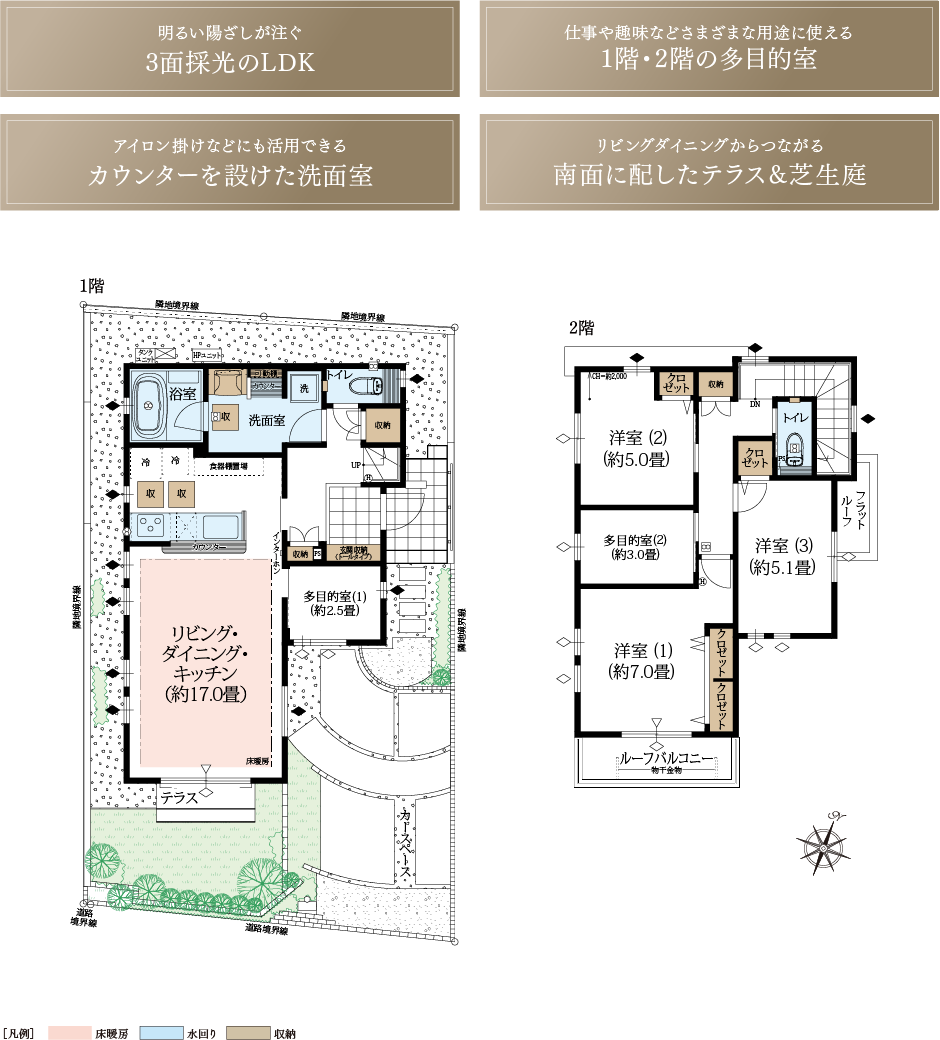 ※外構の石、タイル等はおおよその施工範囲を示したものです。※坪数と畳数は約表記です。