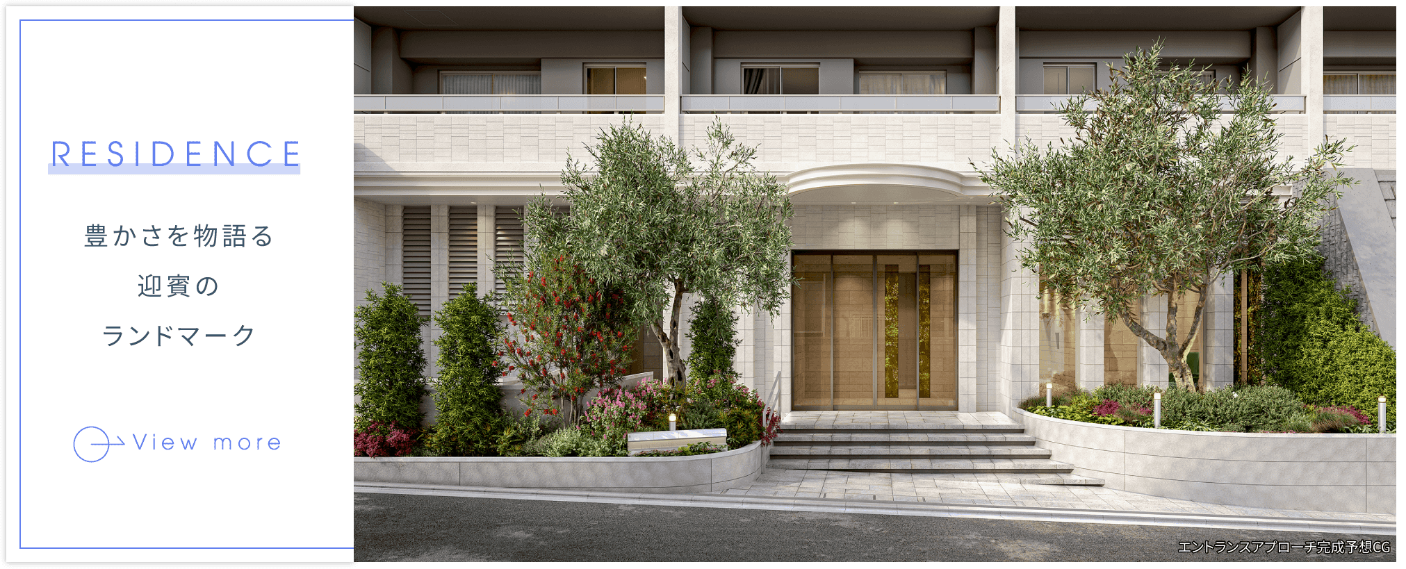 ※掲載の完成予想CGは計画段階の図面を基に描き起こしたもので、形状・色等は実際とは異なります。なお、外観形状の細部・設備機器等につきましては表現しておりません。植栽は竣工から初期の育成期間を経た状態のものを想定して描いており、竣工時は植物の育成を見込んで必要な間隔をとって植えております。家具・調度品は販売価格に含まれません。