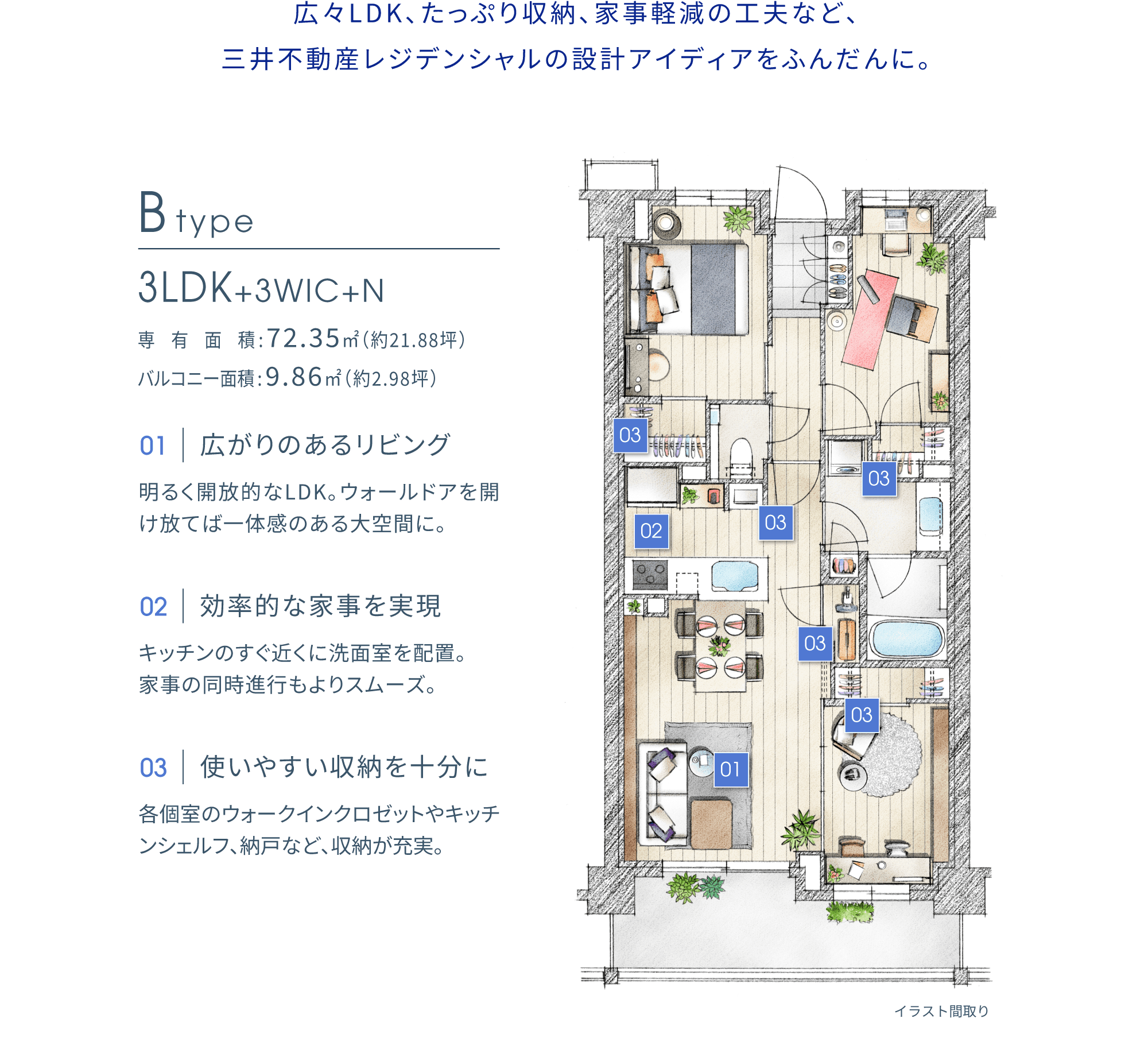 ※掲載のイメージイラストに描かれている家具・調度品は販売価格に含まれておりません。