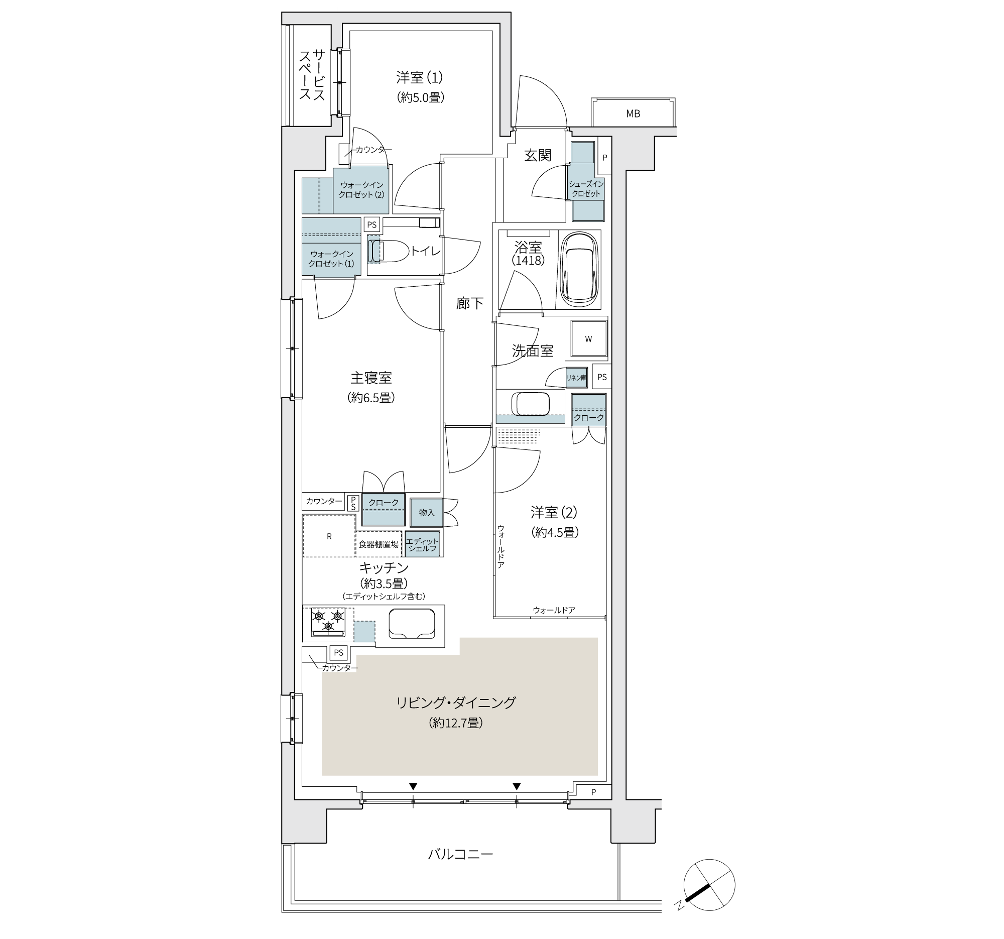 専有面積:74.34㎡(約22.48坪)