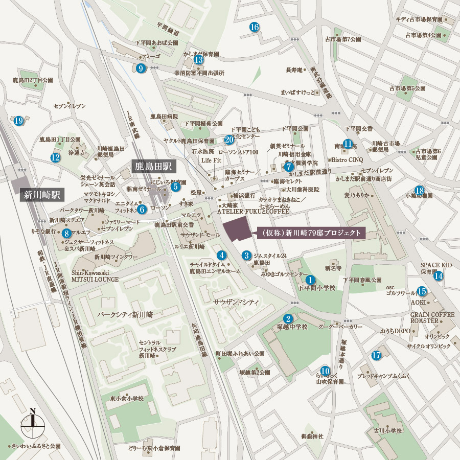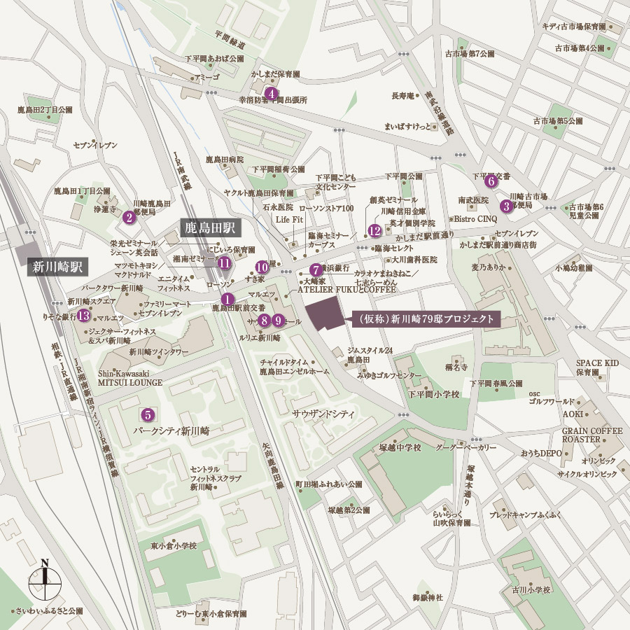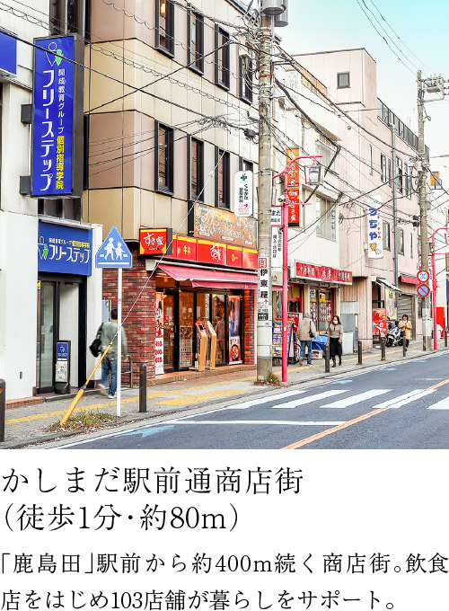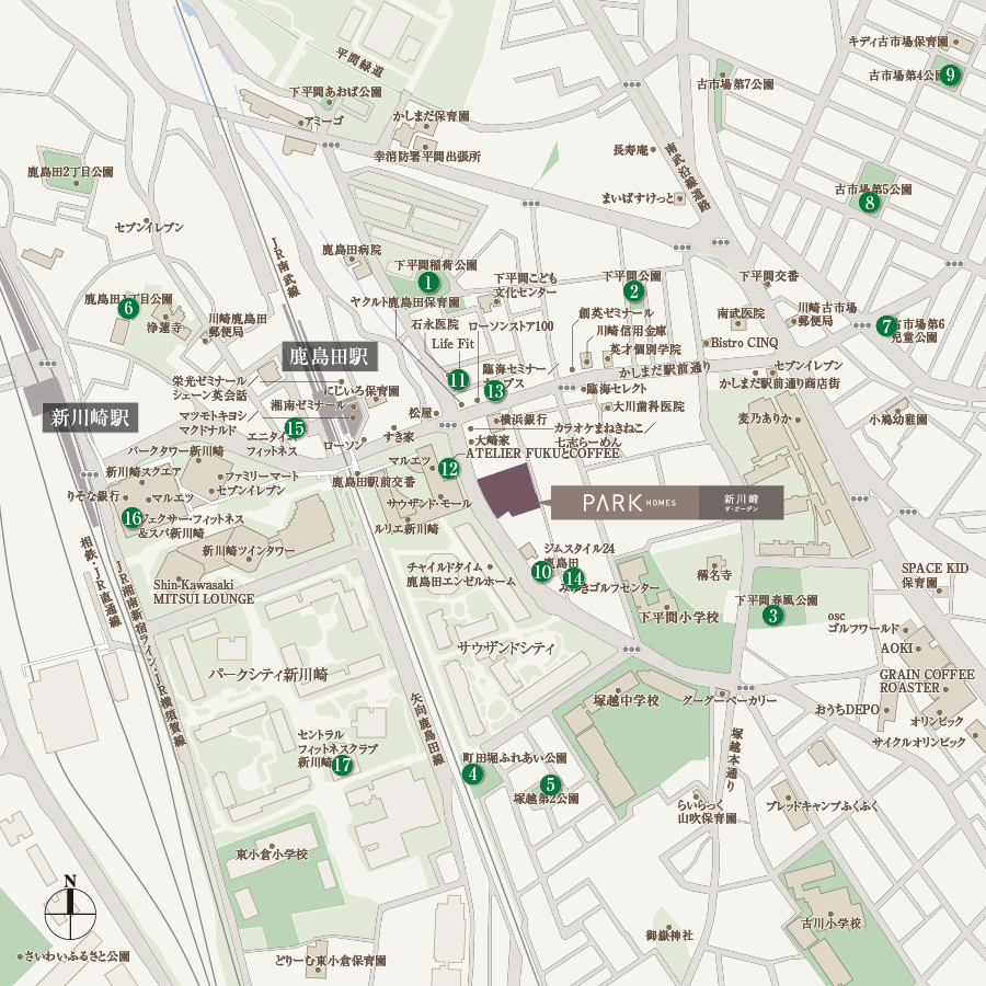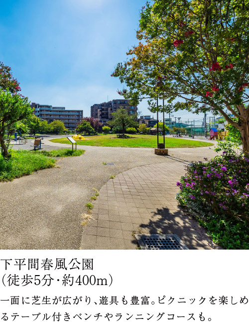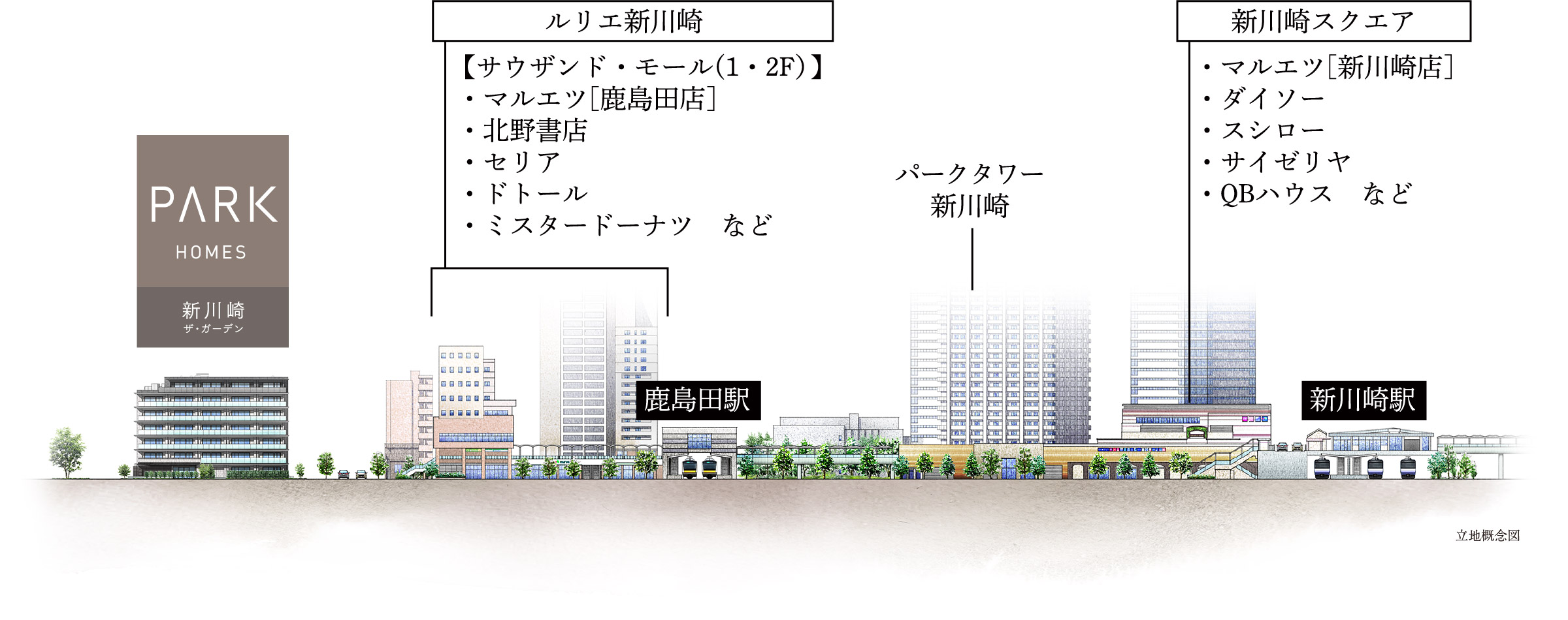 商業施設 教育施設 公園・スポーツ施設 医療施設 官公署・金融機関 ※掲載のエリア概念マップは、周辺建物や道路等の一部を省略・簡略化の上表現しており、実際とは多少異なります。 ※掲載の環境写真は2025年9月・11月に撮影したものです。 ※徒歩分数表示については80mを1分として算出(端数切り上げ)したものです。 ※掲載の情報は2025年12月現在のもので、今後変更になる場合があります。