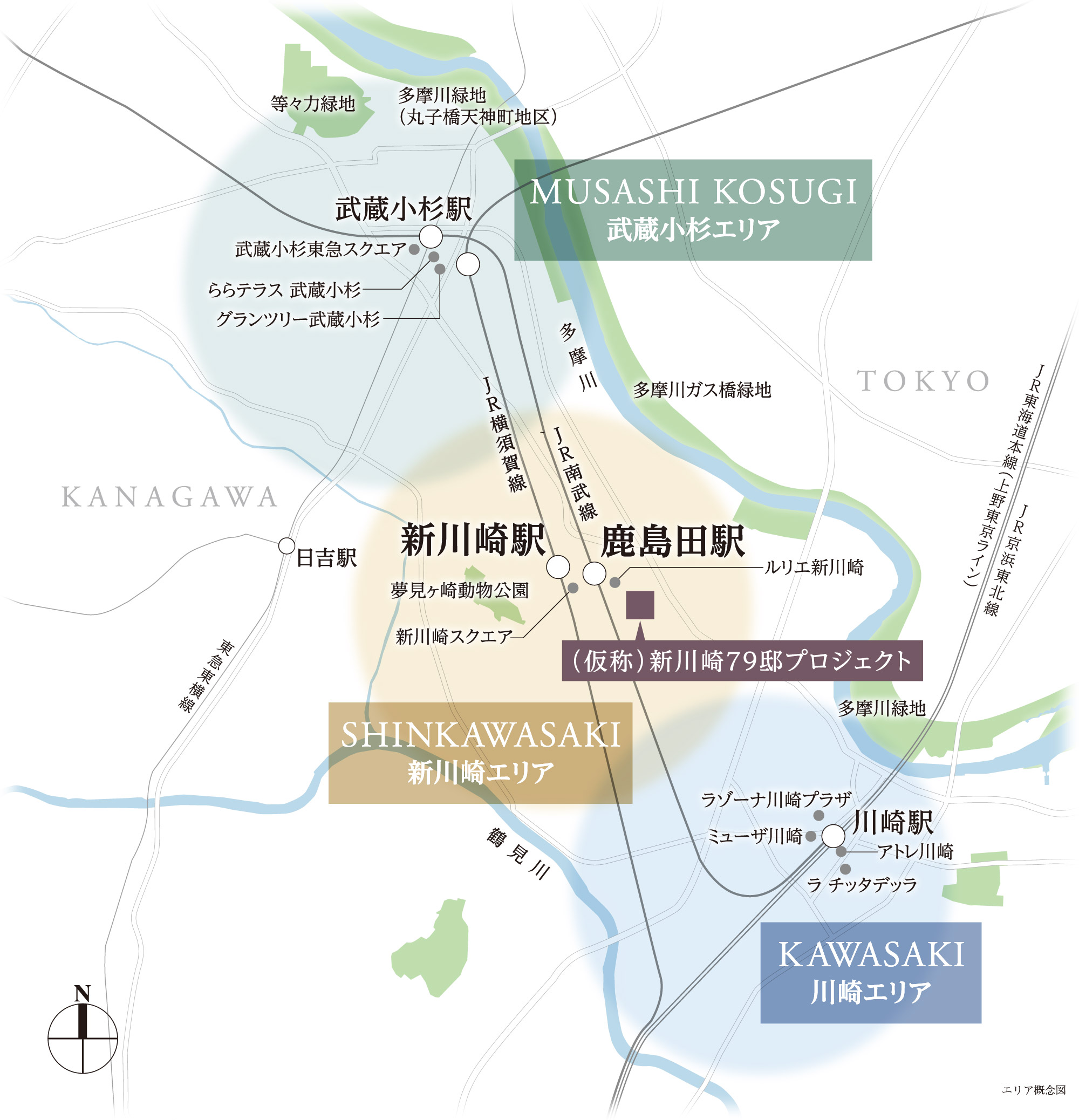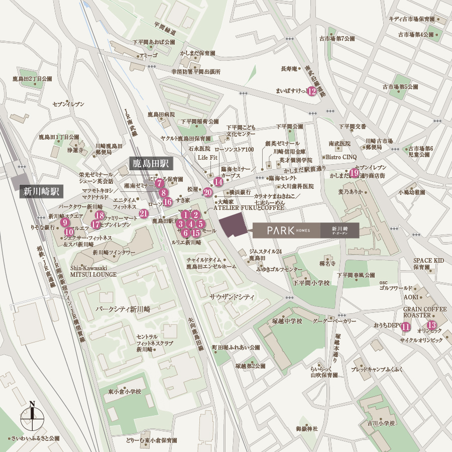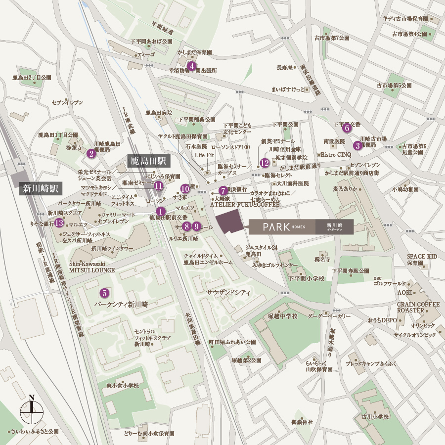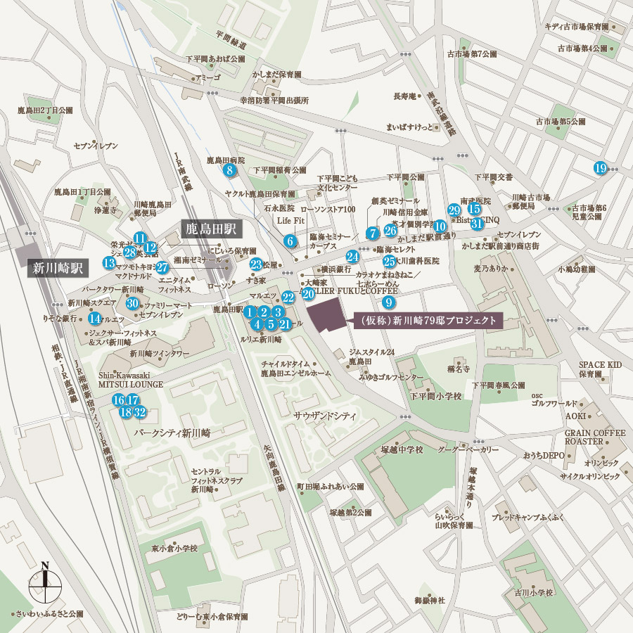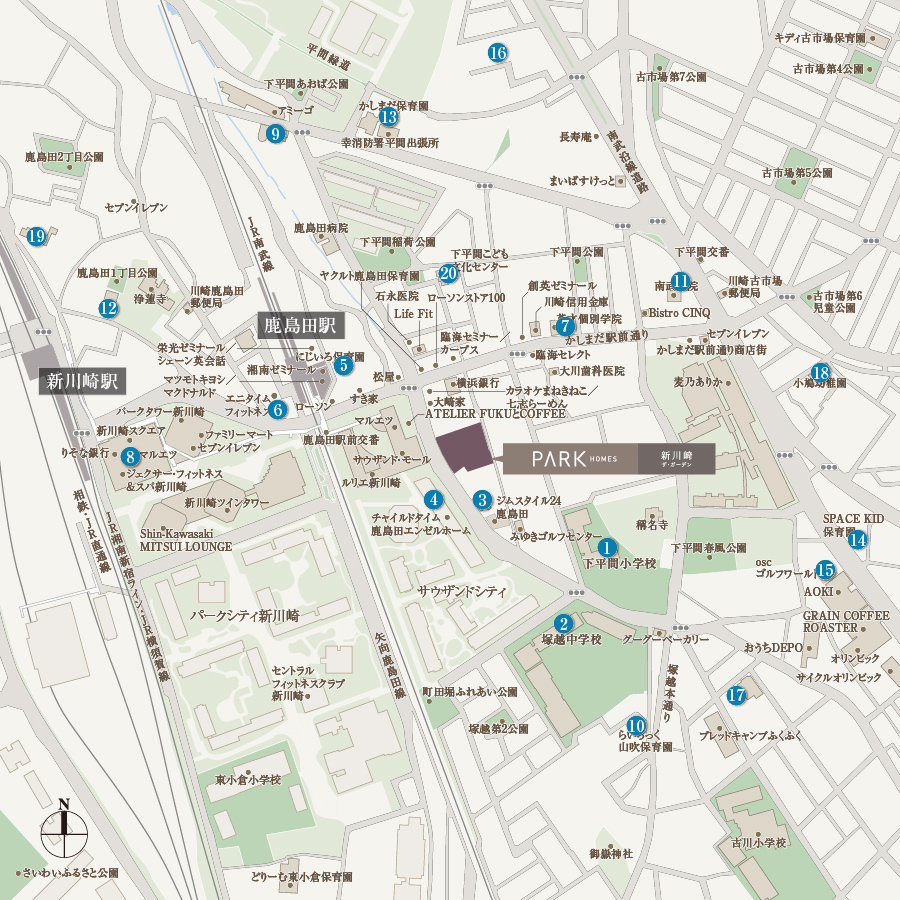 商業施設 教育施設 公園・スポーツ施設 医療施設 官公署・金融機関 ※掲載のエリア概念マップは、周辺建物や道路等の一部を省略・簡略化の上表現しており、実際とは多少異なります。 ※掲載の環境写真は2025年9月・11月に撮影したものです。 ※徒歩分数表示については80mを1分として算出(端数切り上げ)したものです。 ※掲載の情報は2025年12月現在のもので、今後変更になる場合があります。