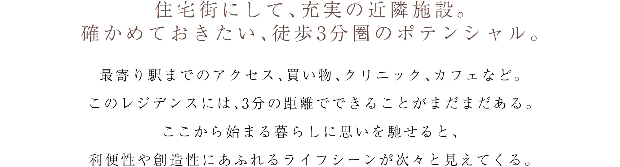 ※掲載のエリア概念マップは、周辺建物や道路等の一部を省略・簡略化の上表現しており、実際とは多少異なります。 ※掲載の環境写真は2025年9月・11月に撮影したものです。 ※徒歩分数表示については80mを1分として算出(端数切り上げ)したものです。 ※掲載の情報は2025年12月現在のもので、今後変更になる場合があります。