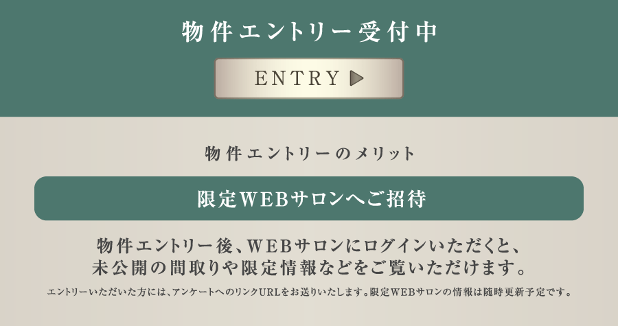 【物件エントリーはこちらから】エントリーいただくとホームページ未公開の間取りなど、限定情報をご覧いただけます