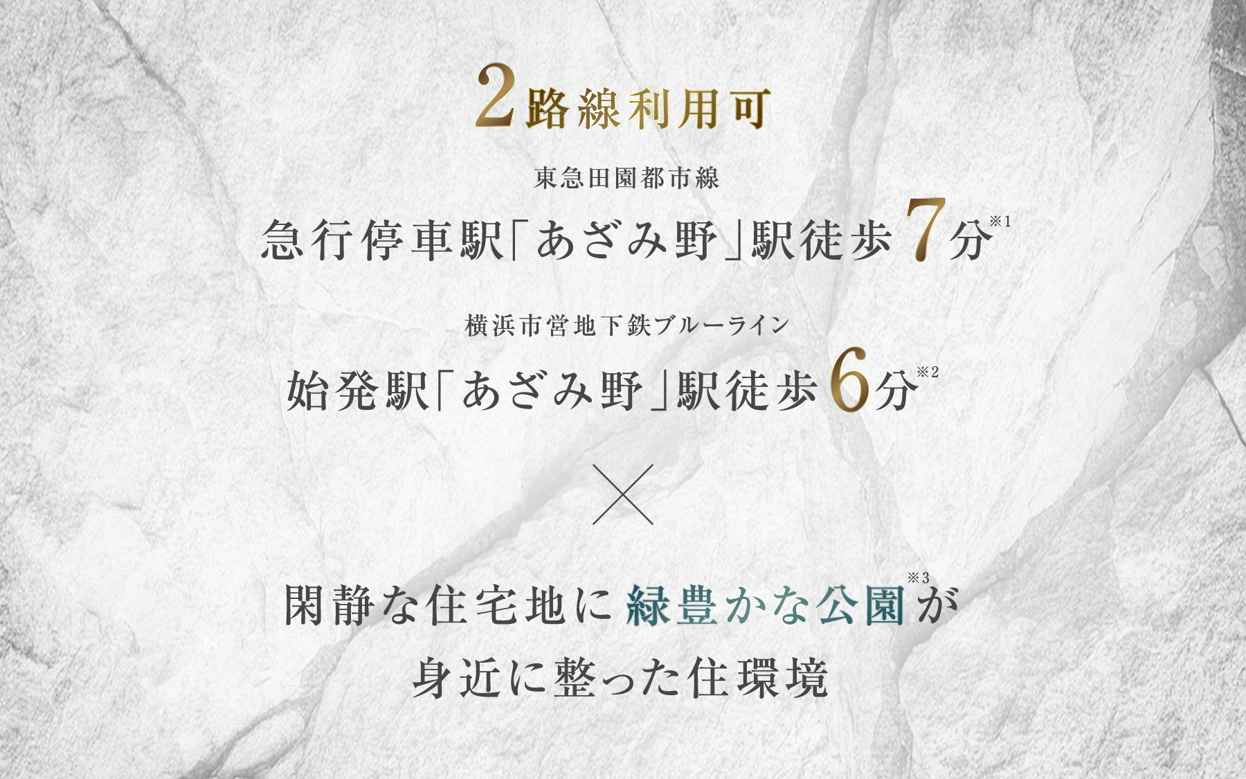 ※2:横浜市営地下鉄ブルーライン「あざみ野」駅徒歩6分(No.1〜6)