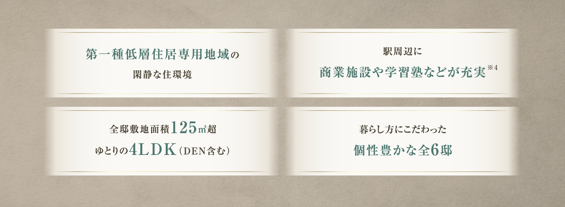 ※4:【商業施設】エトモあざみ野(徒歩6分/No.1・2・5・6、徒歩7分/No.3・4)、オーケーあざみ野店(徒歩7分/No.1〜6)、【学習塾】河合塾マナビスあざみ野校(徒歩6分/No.1~6)、森塾 あざみ野校(徒歩8分/No.1、徒歩9分/No.2〜6)
