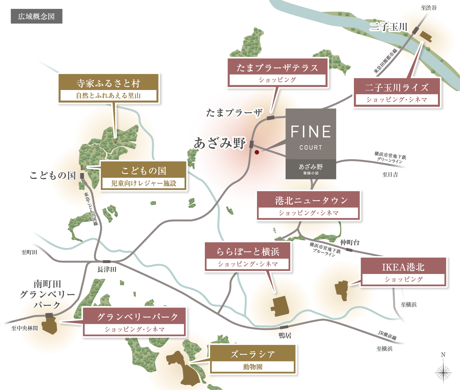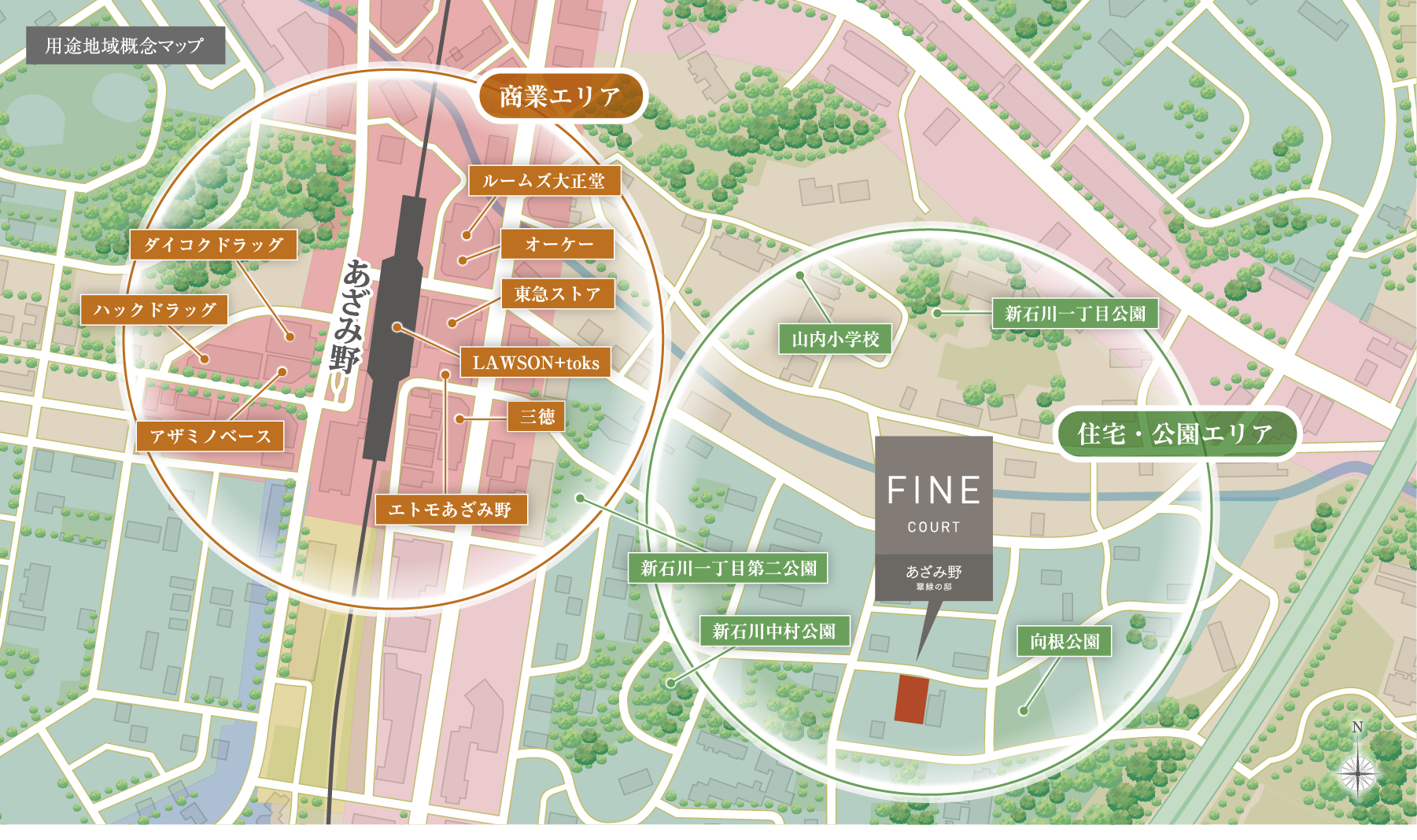 ※掲載の広域概念図は、地図や都市計画図を基に描き起こしたもので実際とは異なります。