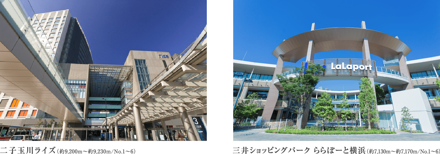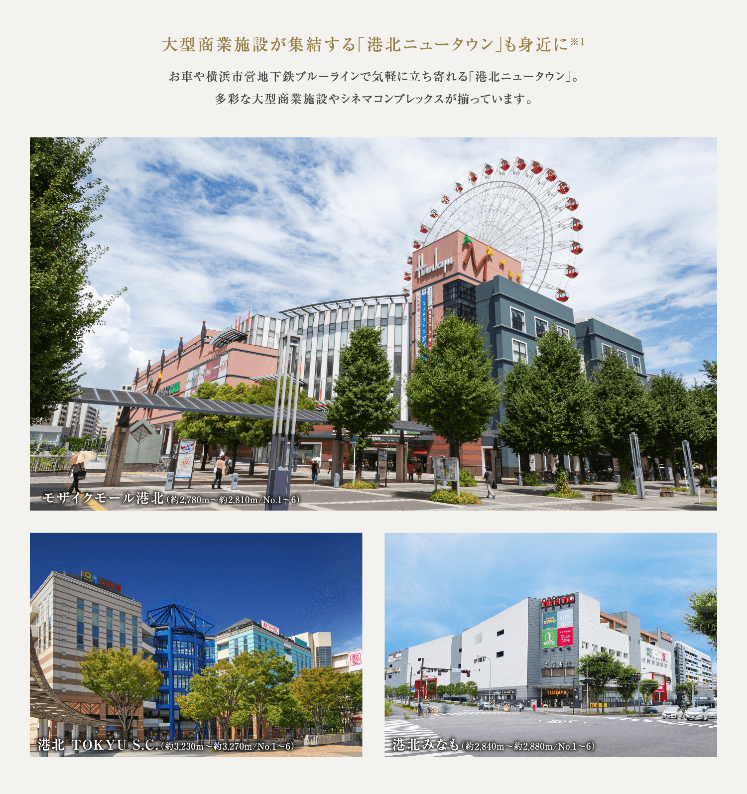 ※1:モザイクモール港北(約2,780m〜約2,810m/No.1~6)、港北 TOKYU S.C.(約3,230m〜約3,270mNo.1~6)、港北みなも(約2,840m〜約2,880mNo.1~6)