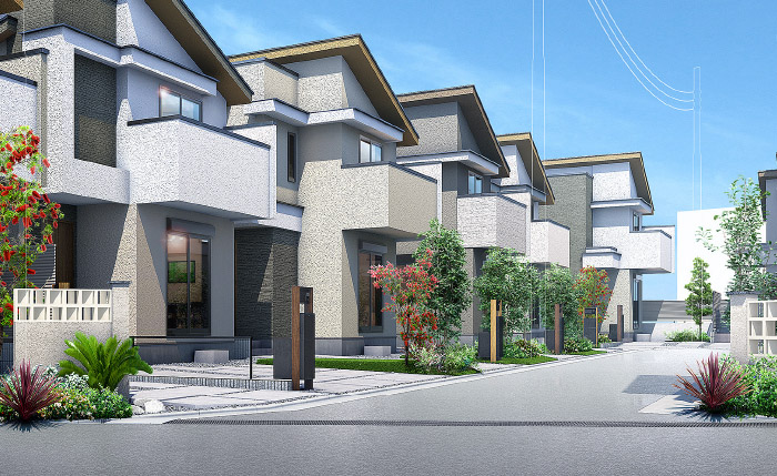 茅ヶ崎の閑静な住宅街に誕生するのは、リゾートの開放感をモダンにまとめ上げた統一感のある街並み。