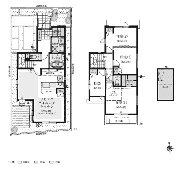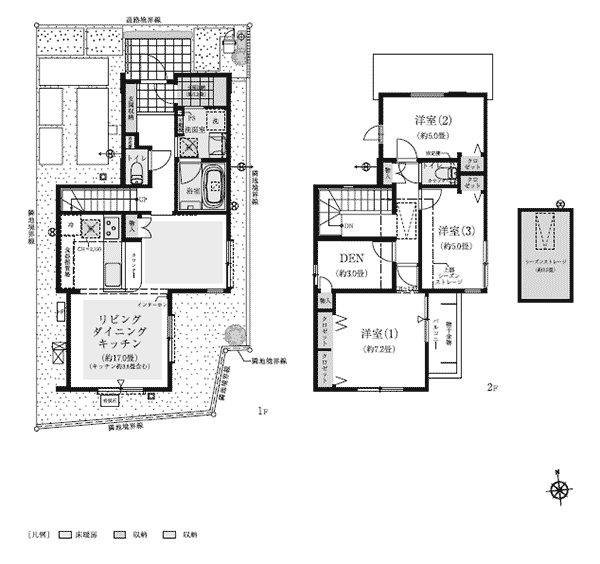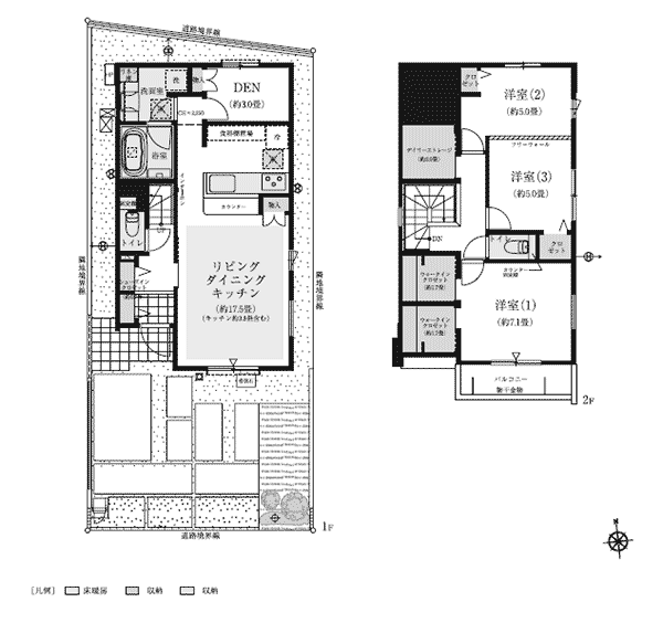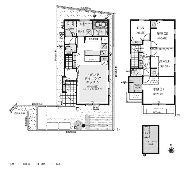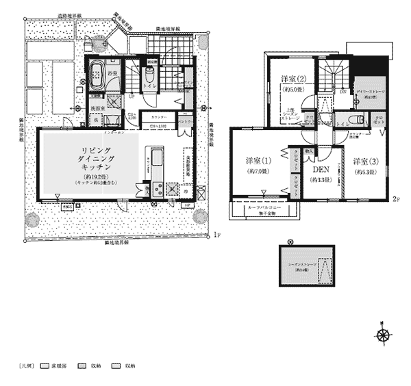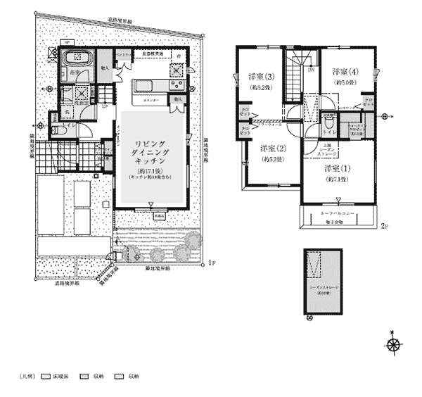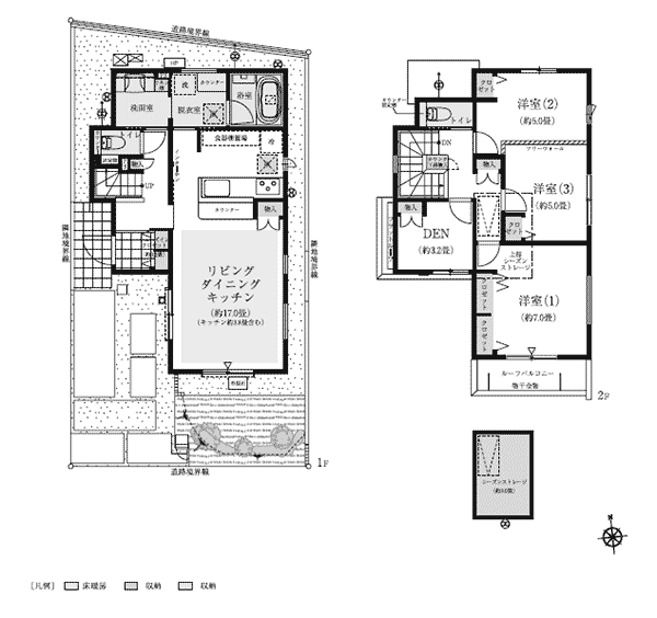 | 区画番号 | 価格 | 土地面積 | 建物面積 | 構造・階数 | 工法 | 間取り | 道路 | 間取り図 | 販売期 |
