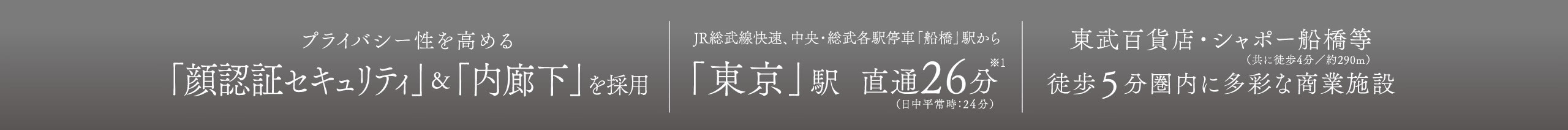 ※1.「東京」駅へ直通26分(日中平常時:24分)/JR総武線快速利用。