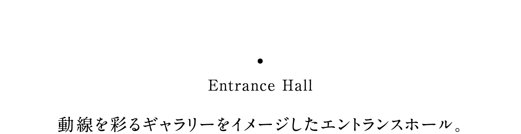 商業エリアの風景と調和しながらも、住まいとしての落ち着いた品格を表現した黒基調のコリドー。奥へ延びる間接照明がエントランスホールへと迎え入れる、安心感と高揚感を感じさせるアプローチを描きました。