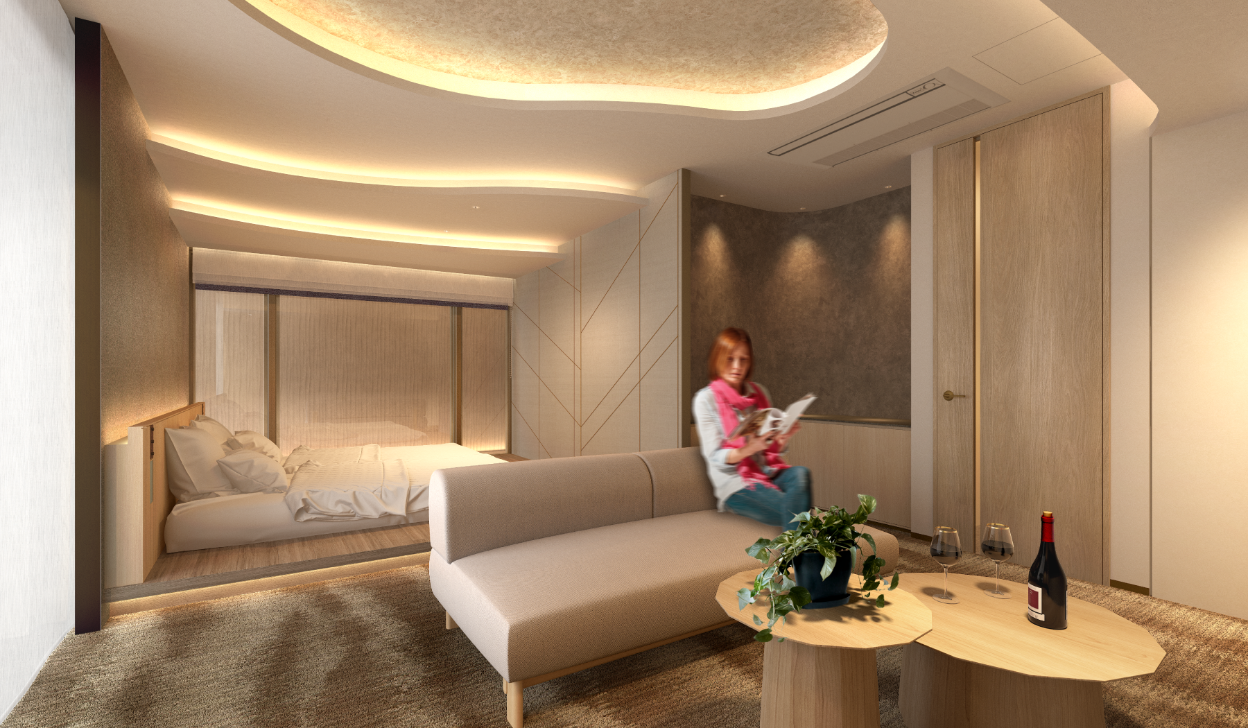ベッドスペースだけでなく、ゆったりとくつろげるリビング空間を設けています。