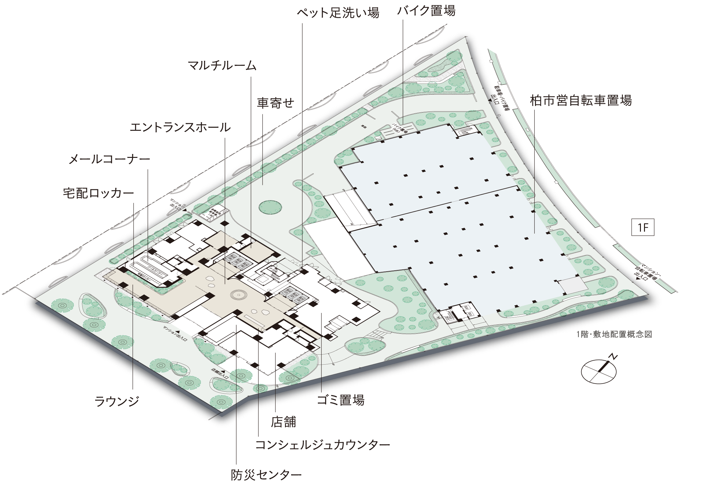 ※外観完成予想CG2は、現地周辺(現地より約1,500m、高さ約50m)から東方面を撮影した眺望写真(2024年11月)を合成したものです。※外観完成予想CG3は敷地内のみ表現しております。※掲載の完成予想CGは計画段階の図面を基に描いたもので建物の形状・色等は実際とは異なります。なお形状の細部、設備機器等は表現しておりません。※表現されている植栽は初期の育成期間を経た状態のものを想定して描いており、竣工時は植物の育成を見込んで必要な間隔をとって植えております。施工上の都合により、設定位置・樹高・本数等変更となる場合があります。※周辺の道路・建物などについては一部簡略化しており、実際とは異なります。※駅周辺エリア概念図は、周辺建物や道路等の一部を省略・簡略化の上表現しており、実際とは異なります。