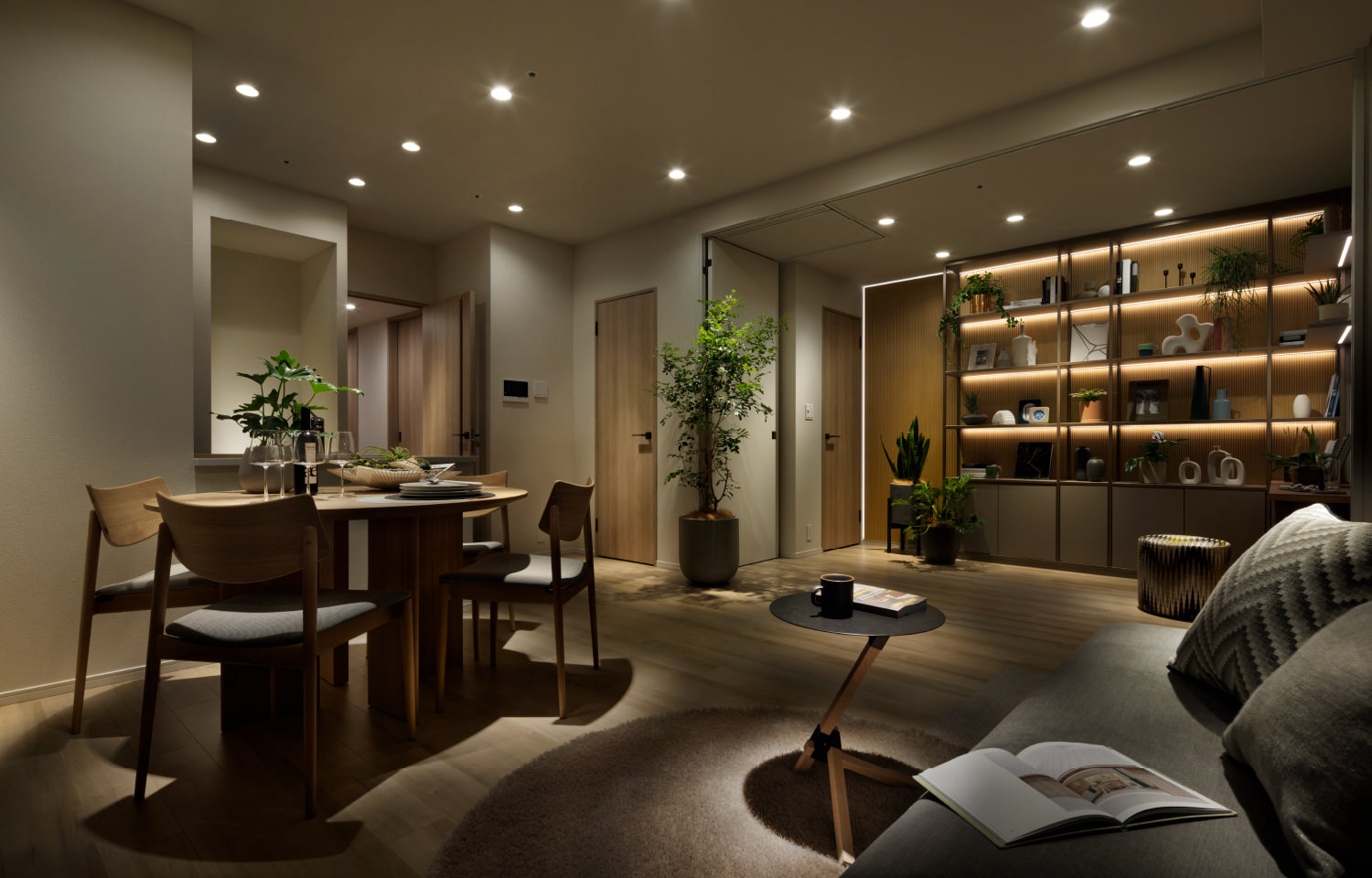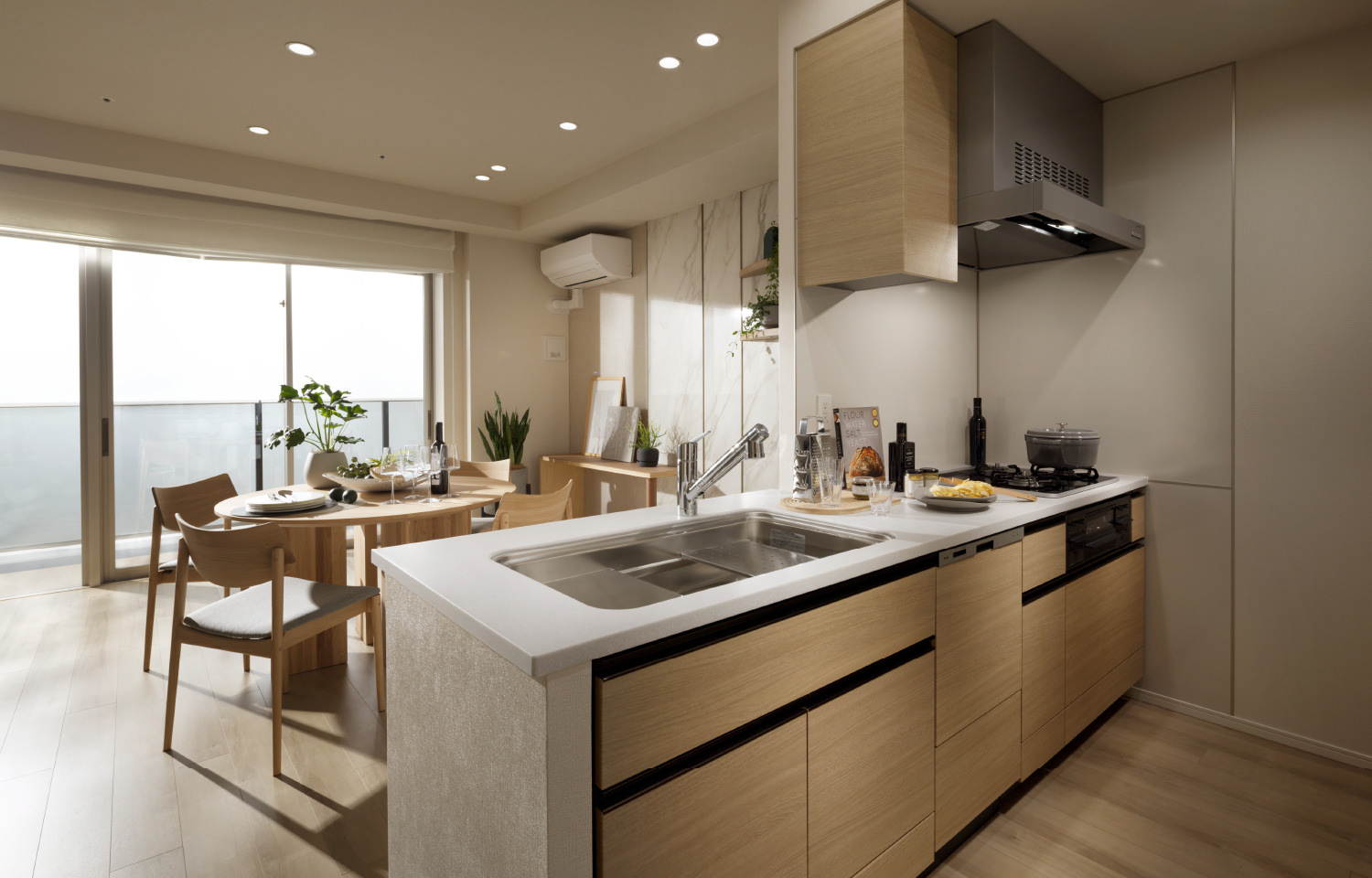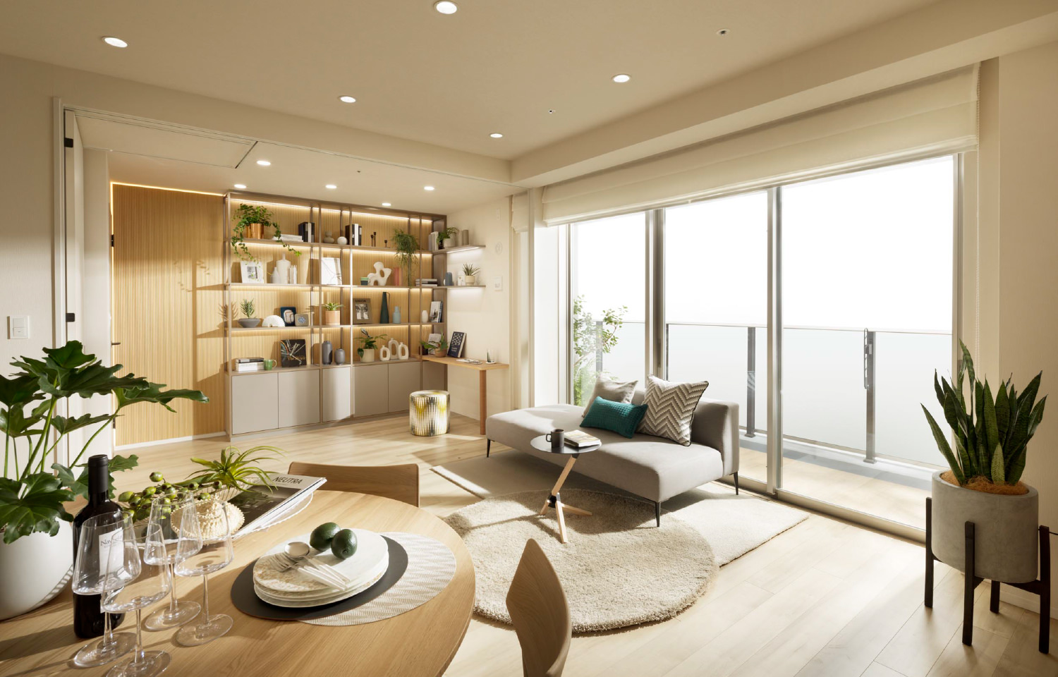 ※掲載の写真はモデルルーム[S70Bタイプ、S93Bタイプ]を撮影(2025年8月)したものに現地25階相当の高さ(約90m)から南西方向を撮影(2024年11月)した眺望写真を合成したものです。一部オプション(有償・無償)が含まれております。※カラーセレクトにより仕様が異なります。※家具・調度品は販売価格に含まれておりません。※住戸内の仕上げ、設備機器等は製品の廃番、機種改定等の理由により予告なく変更となる場合があります。※バルコニー手摺りの仕様および形状は階数によって異なります。バルコニーの使用については管理規約等に従っていただきます。詳しくは係員にお問い合わせください。※無償セレクト・有償オプションのお申し込みには期限がございます。階数や住戸タイプによっては、ご利用いただけない場合、またお申し込みいただく内容に制限がある場合がございます。内容・期限などの詳細につきましては係員までお問い合わせください。※インテリアオプションについては、売主による販売対象オプションではありません。