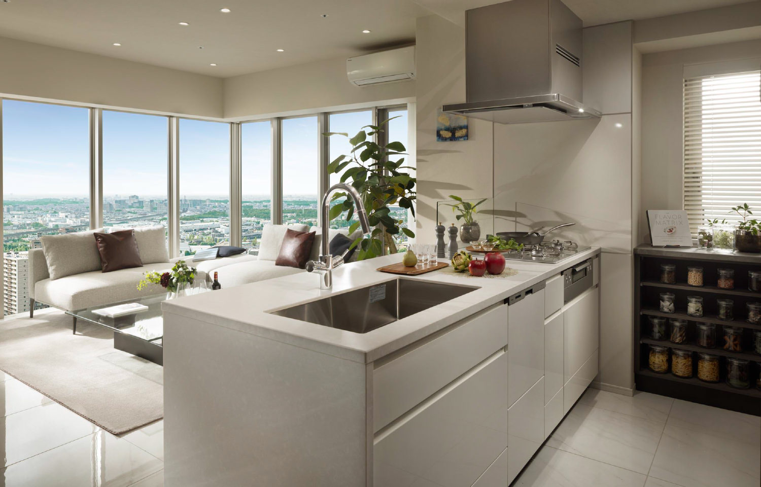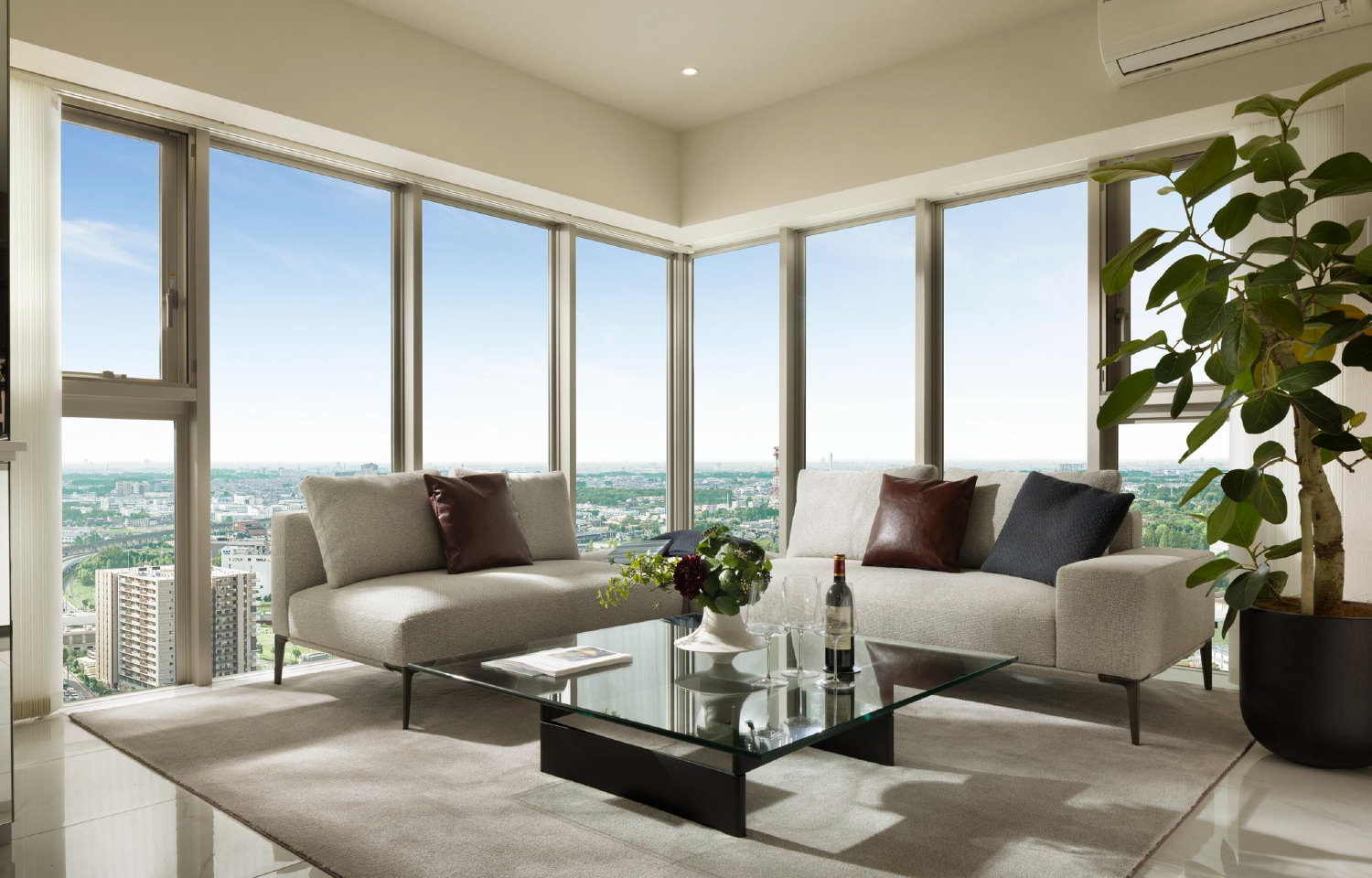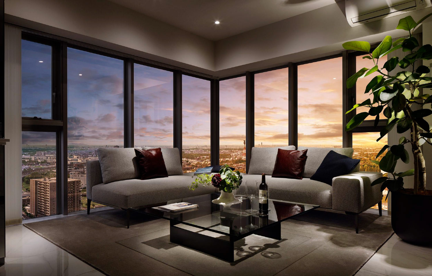 ※掲載の写真はモデルルーム[S70Bタイプ、S93Bタイプ]を撮影(2025年8月)したものに現地25階相当の高さ(約90m)から南西方向を撮影(2024年11月)した眺望写真を合成したものです。一部オプション(有償・無償)が含まれております。※カラーセレクトにより仕様が異なります。※家具・調度品は販売価格に含まれておりません。※住戸内の仕上げ、設備機器等は製品の廃番、機種改定等の理由により予告なく変更となる場合があります。※バルコニー手摺りの仕様および形状は階数によって異なります。バルコニーの使用については管理規約等に従っていただきます。詳しくは係員にお問い合わせください。※無償セレクト・有償オプションのお申し込みには期限がございます。階数や住戸タイプによっては、ご利用いただけない場合、またお申し込みいただく内容に制限がある場合がございます。内容・期限などの詳細につきましては係員までお問い合わせください。※インテリアオプションについては、売主による販売対象オプションではありません。