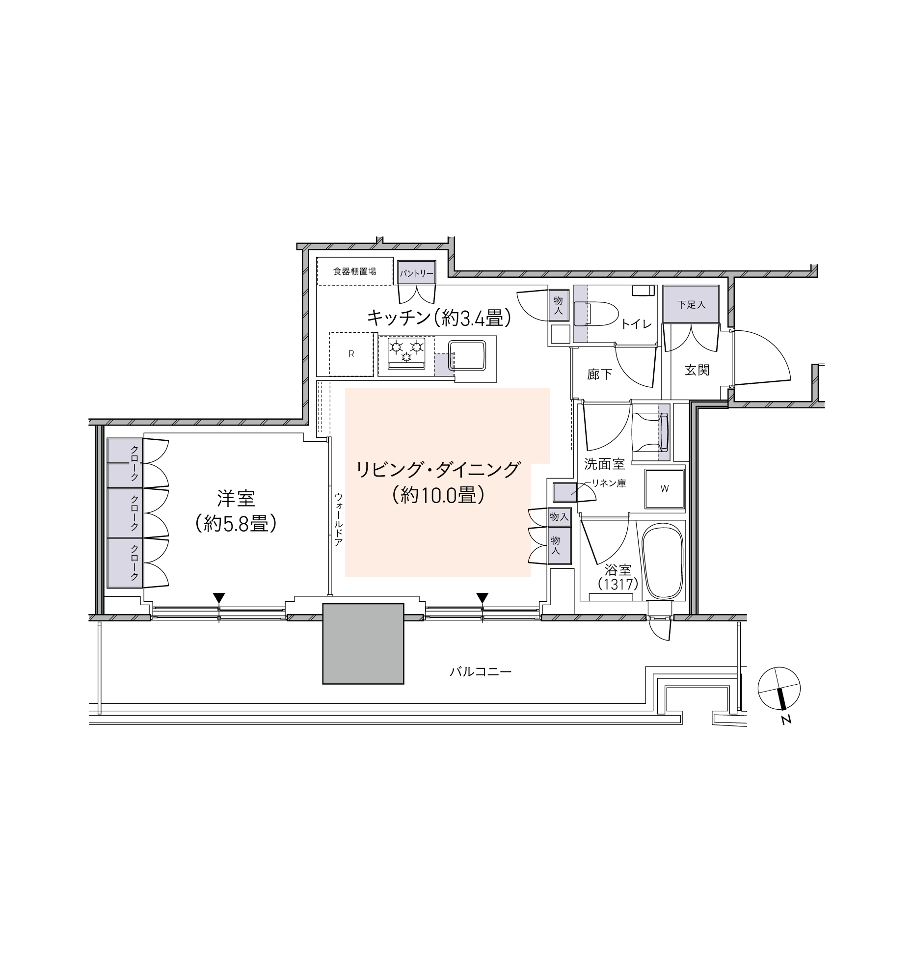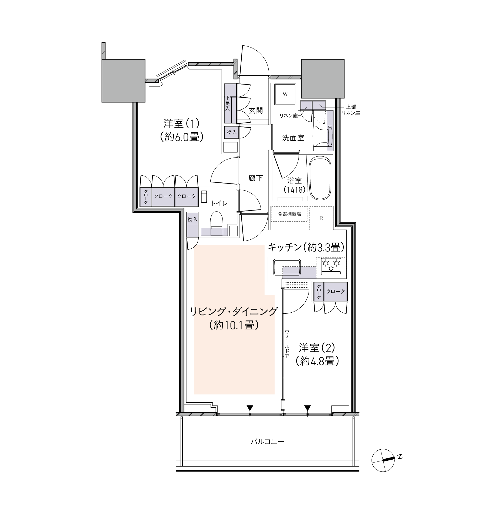 E56ATYPE専有面積56.51㎡(約17.09坪)2LD・K予定販売価格6,300万円台~※100万円単位浴室1418サイズLDはゆとりの10畳以上