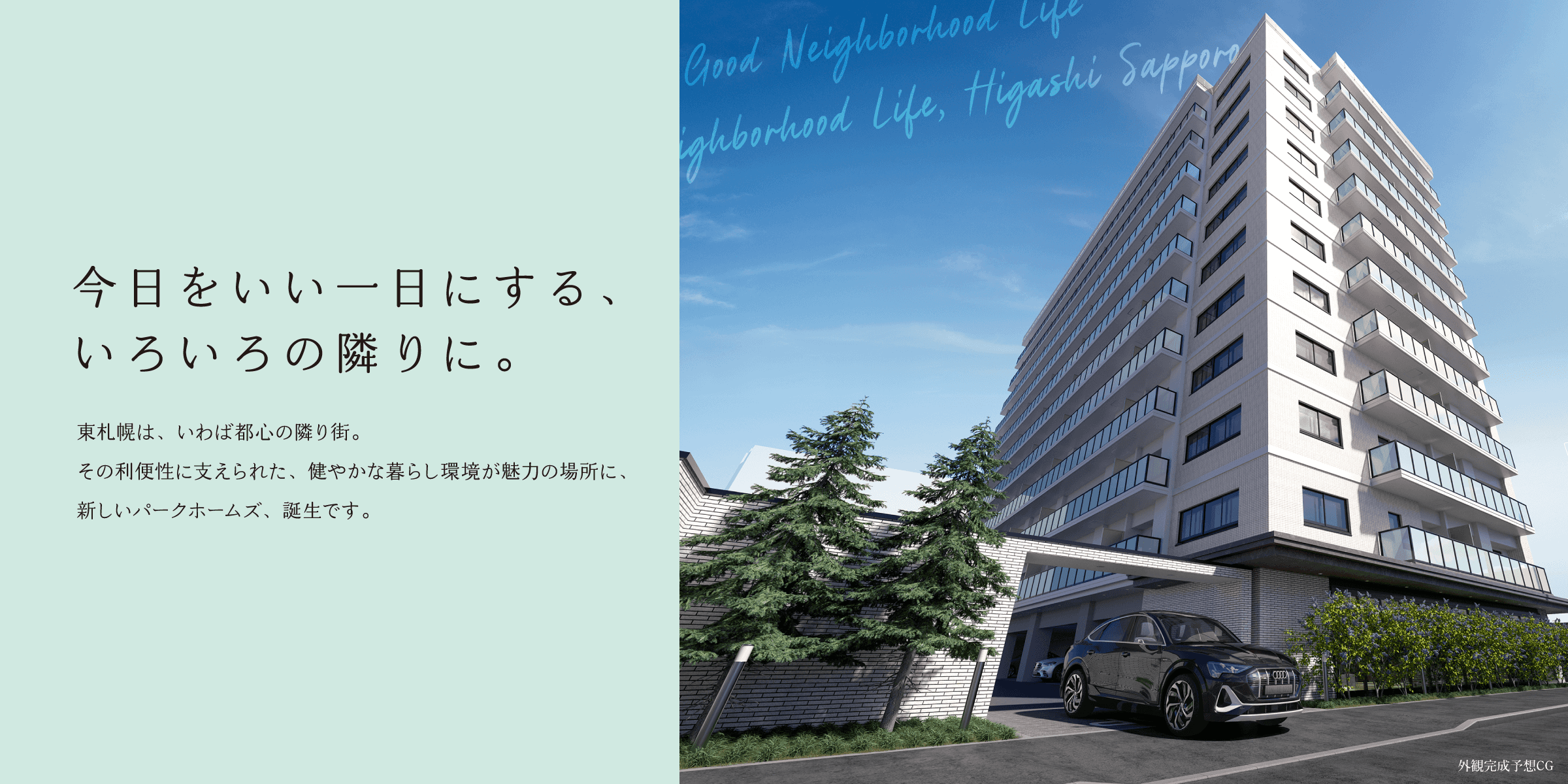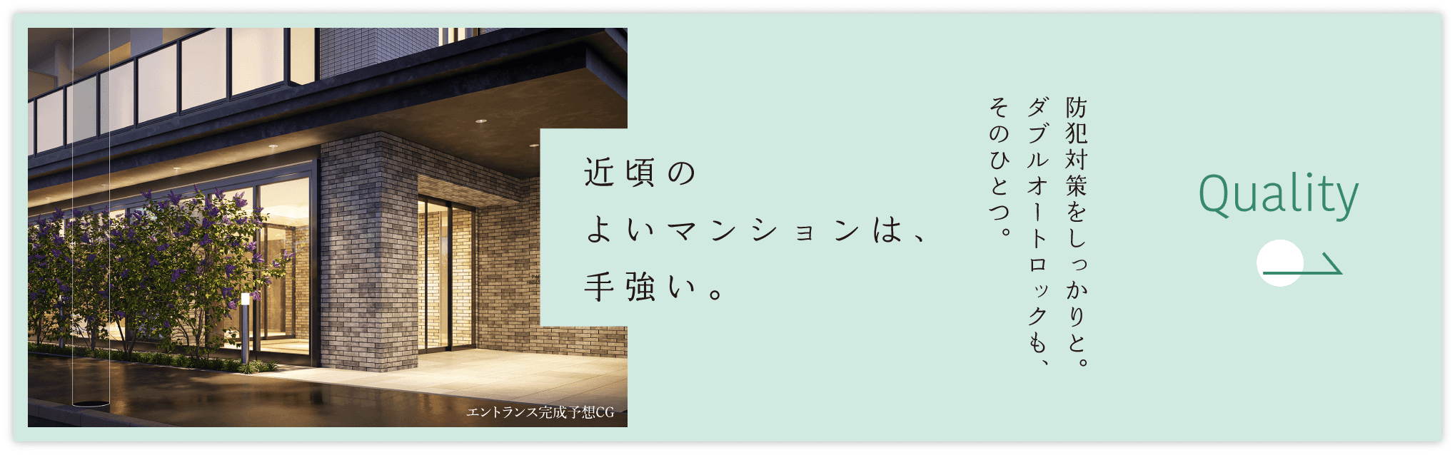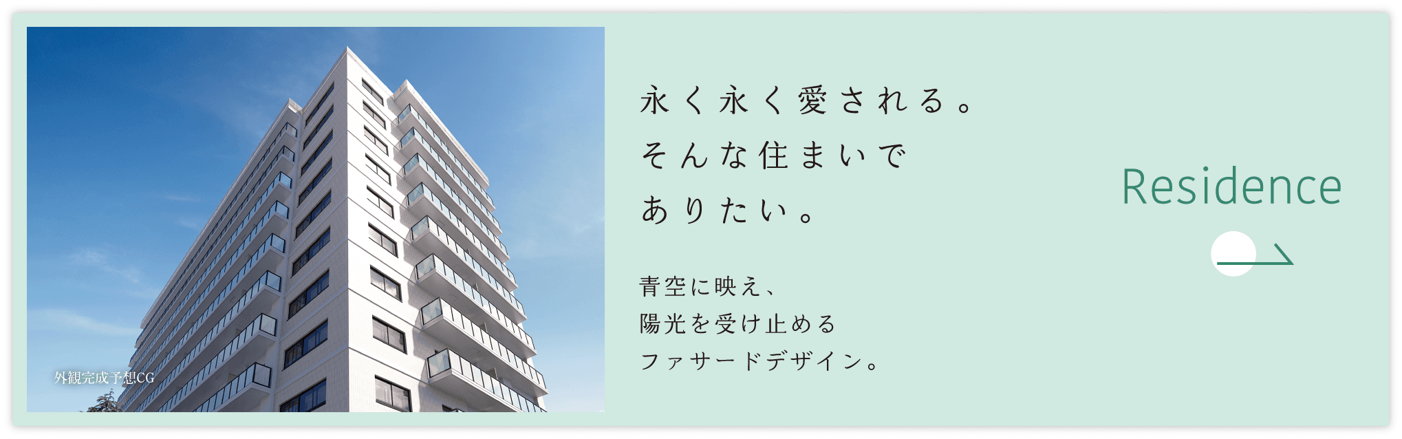 ※掲載の完成予想CGは計画段階の図面を基に描き起こしたもので形状・色等は実際とは異なります。なお、外観形状の細部、設備機器等は表現しておりません。この完成予想図で表現されている植栽は竣工から初期の生育期間を経た状態のものを想定しており、竣工時には植物の生育を見込んで必要な間隔をとって植えています。共用部の家具・調度品・アート作品等は変更となる場合がございます。共用部分の使用については管理規約に従っていただきます。