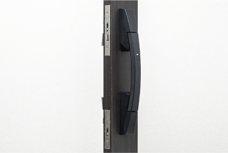 TebraキーをTebra passリーダにかざすと解錠できます。非接触は電池切れの場合も操作可能です。