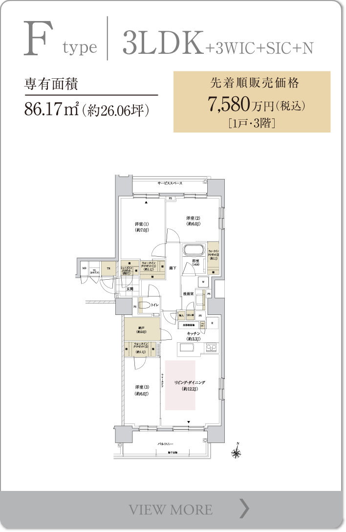 ※WIC:ウォークインクロゼット SIC:シューズインクロゼット N:納戸
