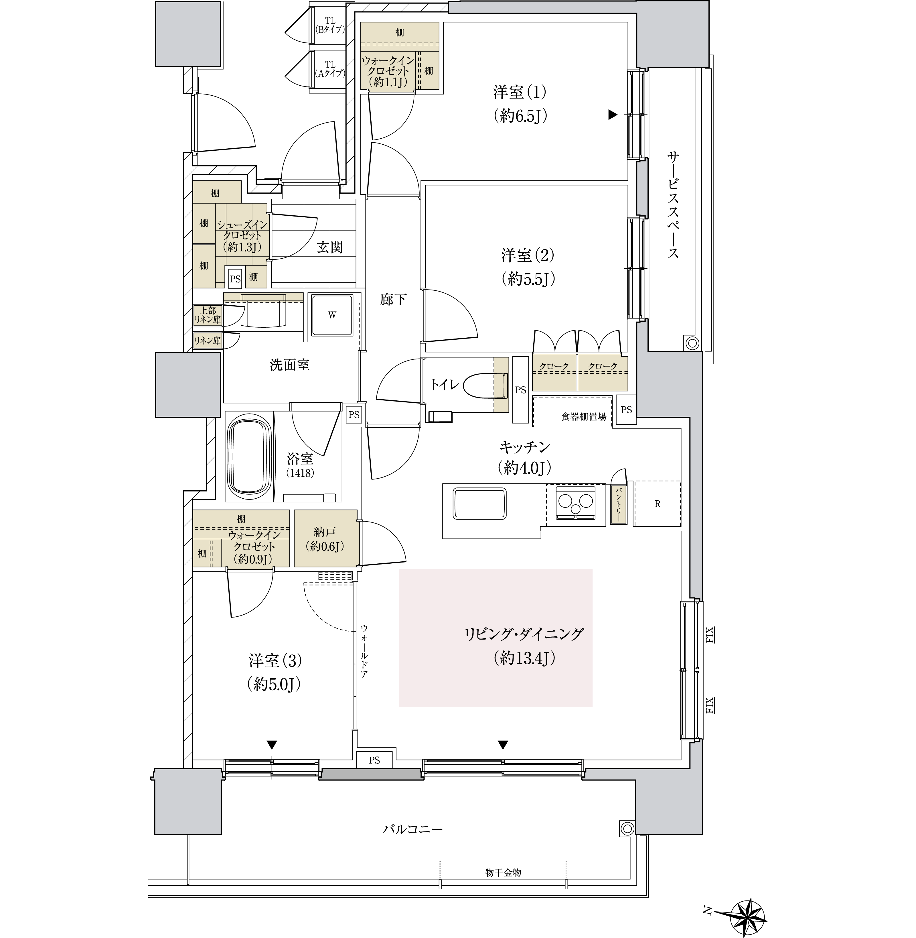 ●サービススペース面積/4.58m²(約1.38坪)