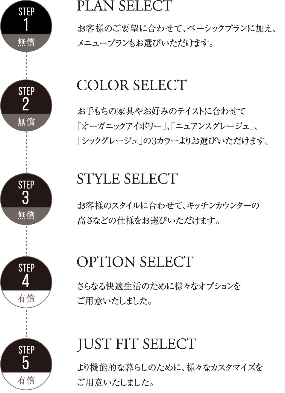 キッチンカウンターの高さなどの仕様をお選びいただけます。