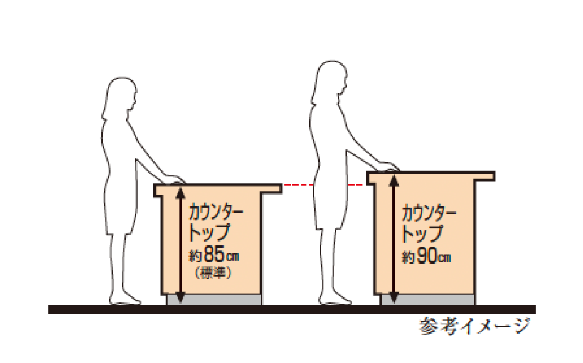 カウンタートップの高さを約85㎝(標準)・約90㎝より