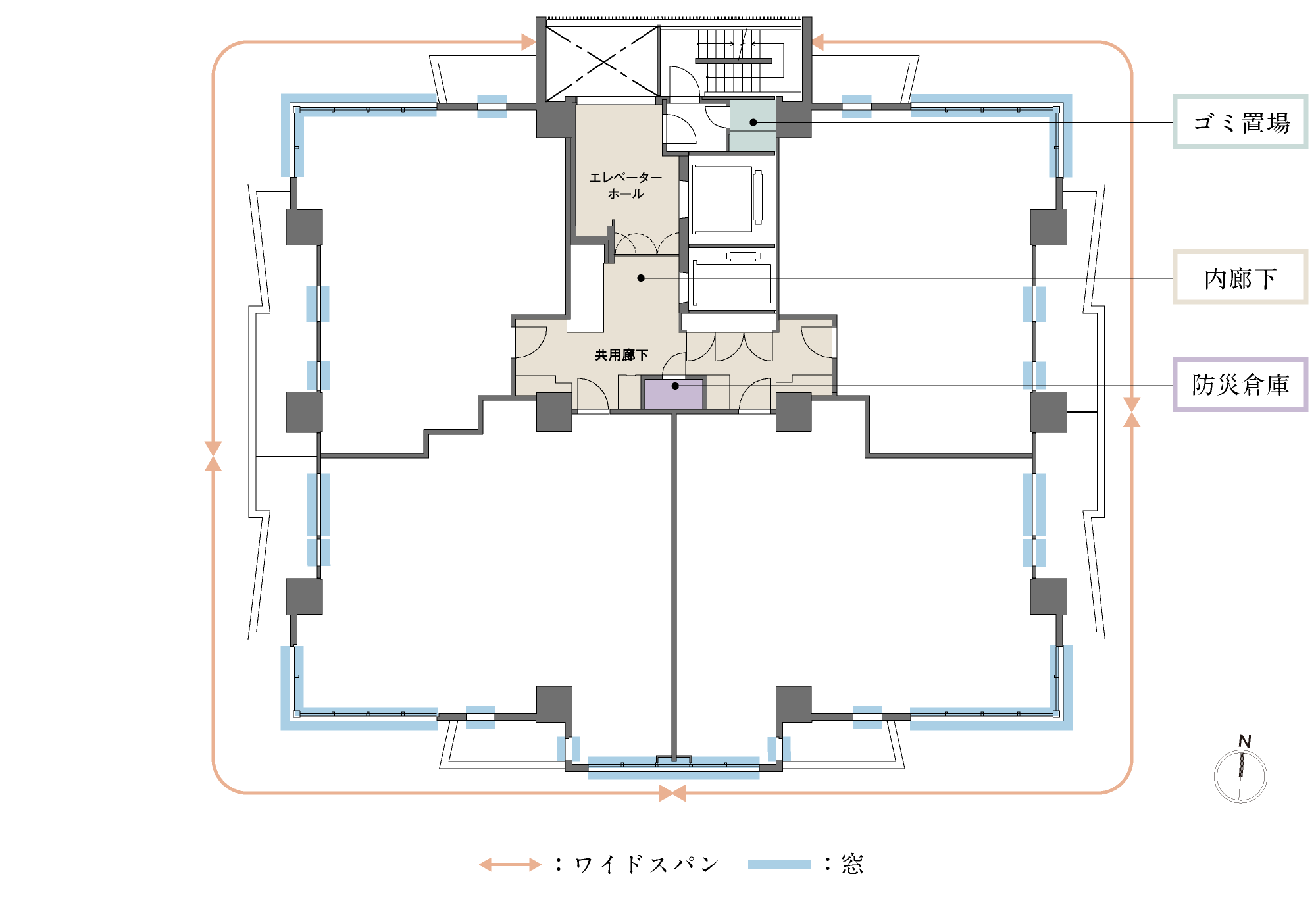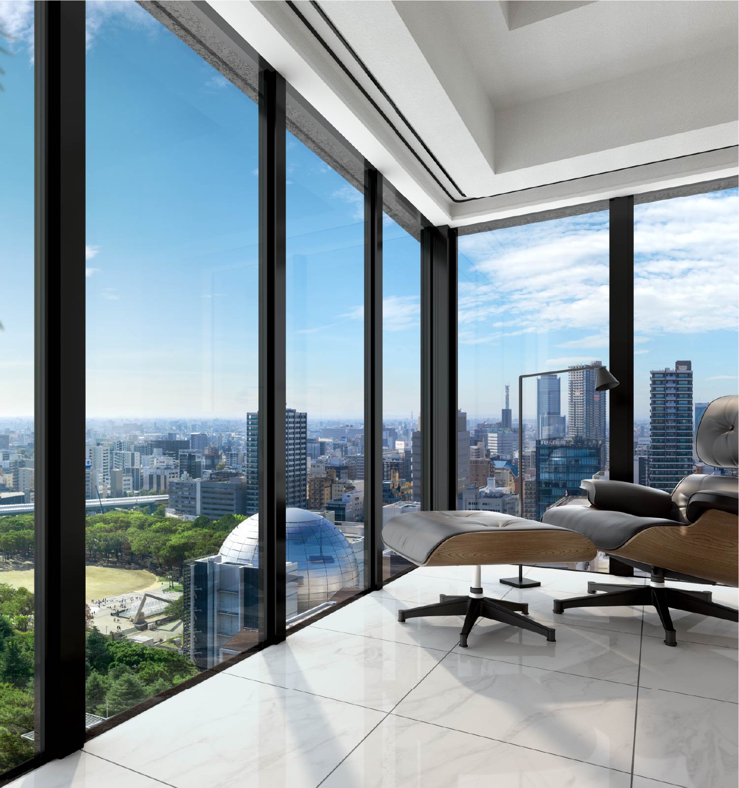 視界が豊かにひろがるコーナーサッシ。都心であることを忘れさせる、圧倒的開放感。