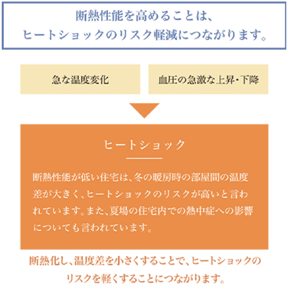 暖かい家には、ヒートショックや起床時の血圧上昇を抑えるなどの予防・軽減効果があると言われています。