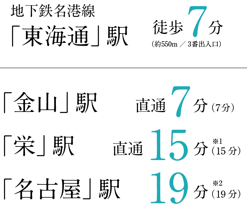 ※1 地下鉄名港線「東海通」駅から地下鉄名城線相互乗り入れにより直通。