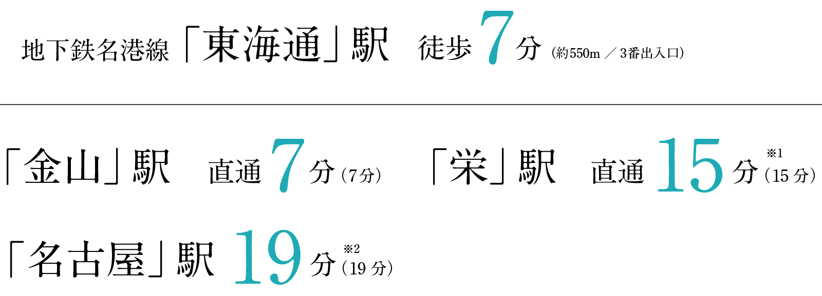 ※2 地下鉄名港線「東海通」駅から「金山」駅で、JR東海道本線・快速、または中央本線・快速電車利用。
