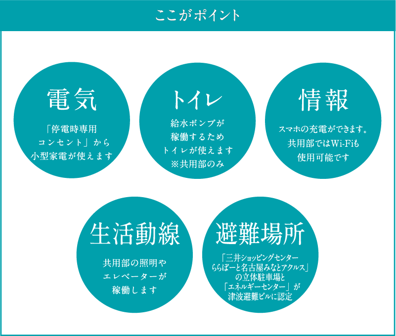 停電が起きても、電気、ガス、トイレなど最低限のライフラインが確保でき、