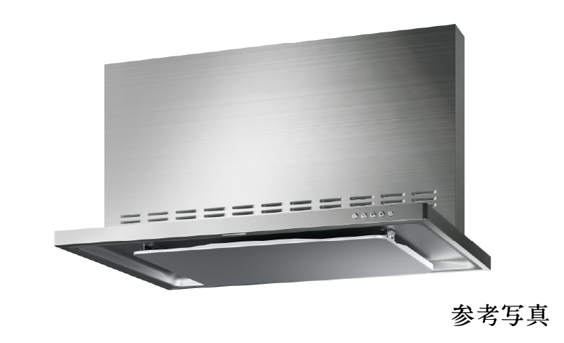 スッキリと軽やかなステンレス製ワイドレンジフードを装備。吸い込み風速が強く、従来品に比べて油はねなどの捕獲率も高まりました。