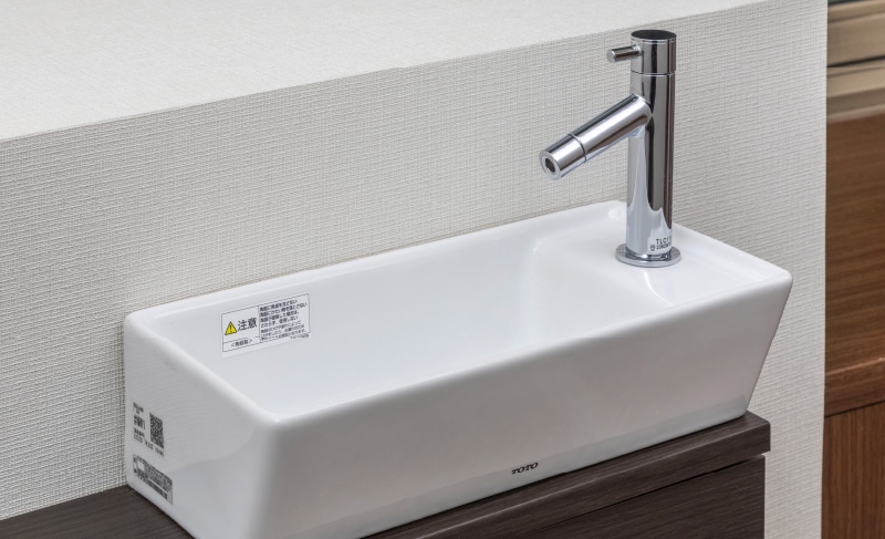 空間にフィットするスマートなデザインの独立した手洗い器を設置しました。