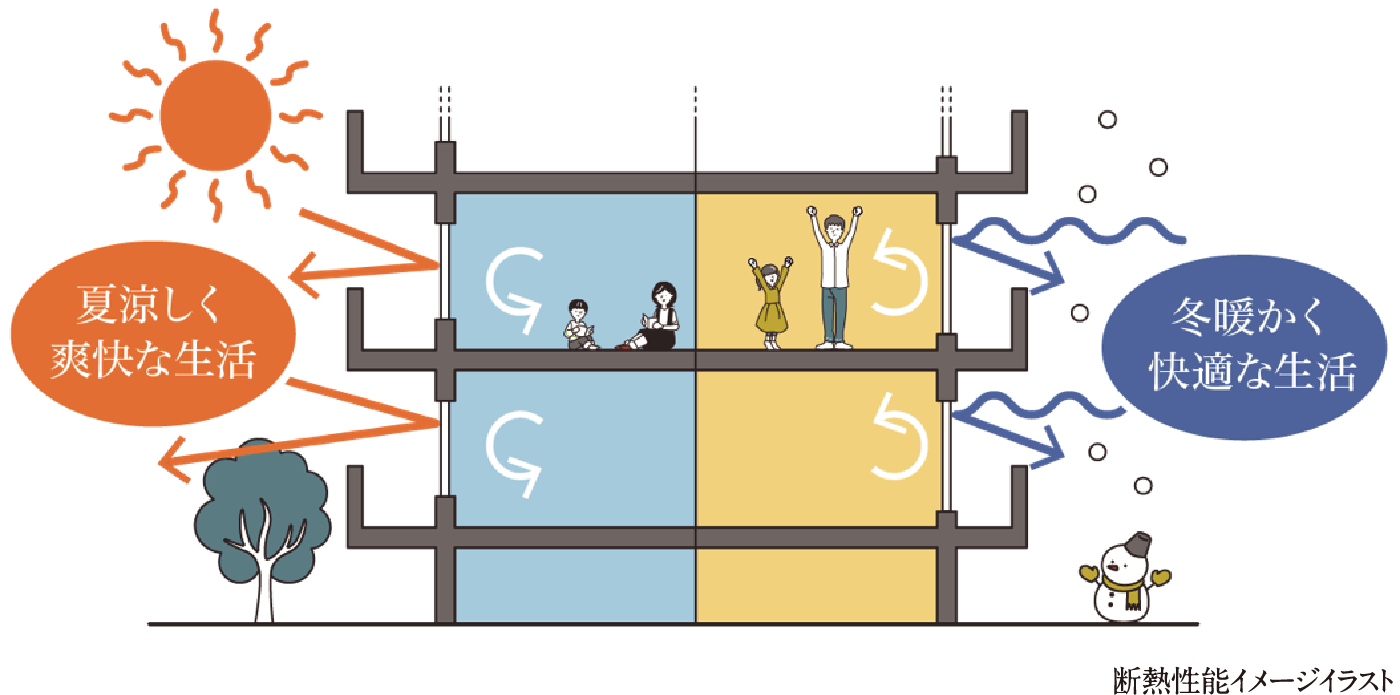 高断熱のZEHマンションは、住戸内の温度が外部の温度変化の影響を受けにくいため、夏の暑さも冬の寒さも住戸内に伝わりにくく、部屋間の温度も減少。結露も抑止します。