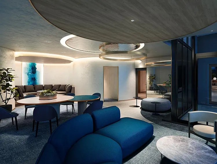 豊かな水辺の輪をイメージしたハモンラウンジ。