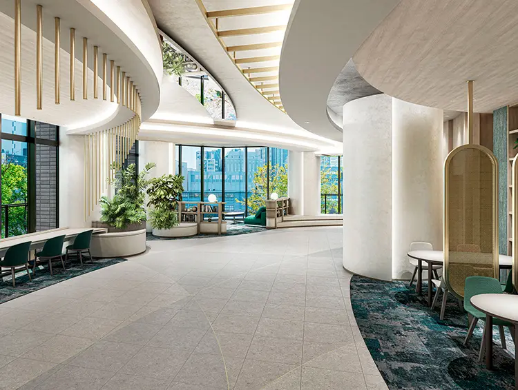 空間と溶け合う3階のリバーフロウラウンジ。