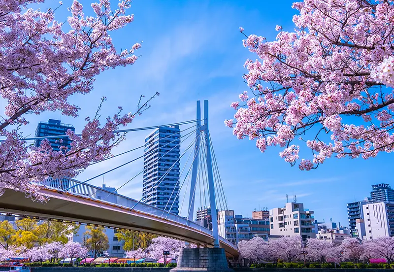 春の花見は古くから愛される日本の風物詩。140を超える品種が見られる造幣局の「桜の通り抜け」、大川の両岸には桜ノ宮の名にふさわしい毛馬桜之宮公園の約4,800本の桜が咲き誇り、大川沿いを薄紅色に染めあげます。また、大阪城を背景に見上げる大阪城公園の桜も壮観。多くの人が訪れる、桜の名所がすぐ傍に広がります。