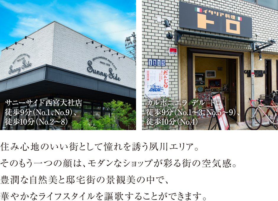 夙川河川敷緑地/徒歩10分(No.9)、徒歩11分(No.1~8)