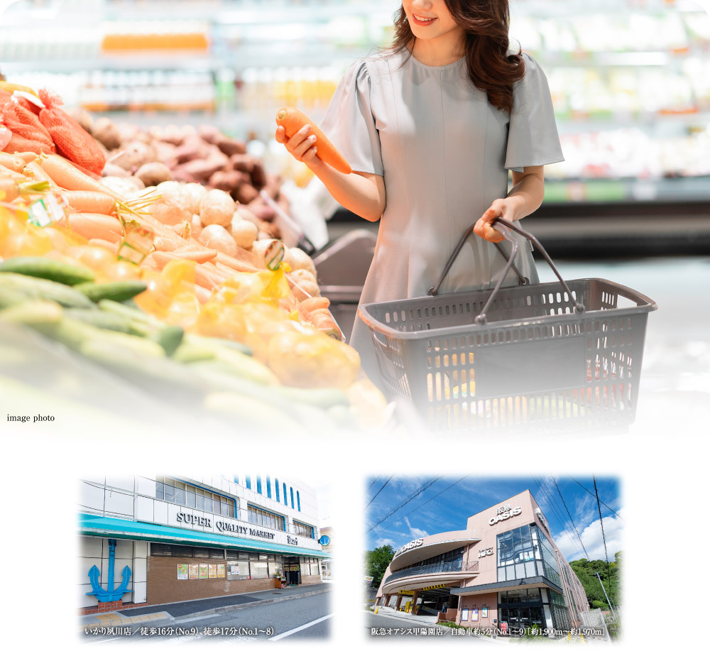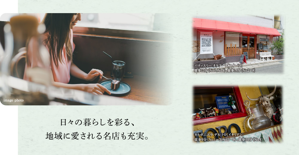 現地周辺の街並み/徒歩2分(No.1、No.9)、徒歩3分(No.2~8)